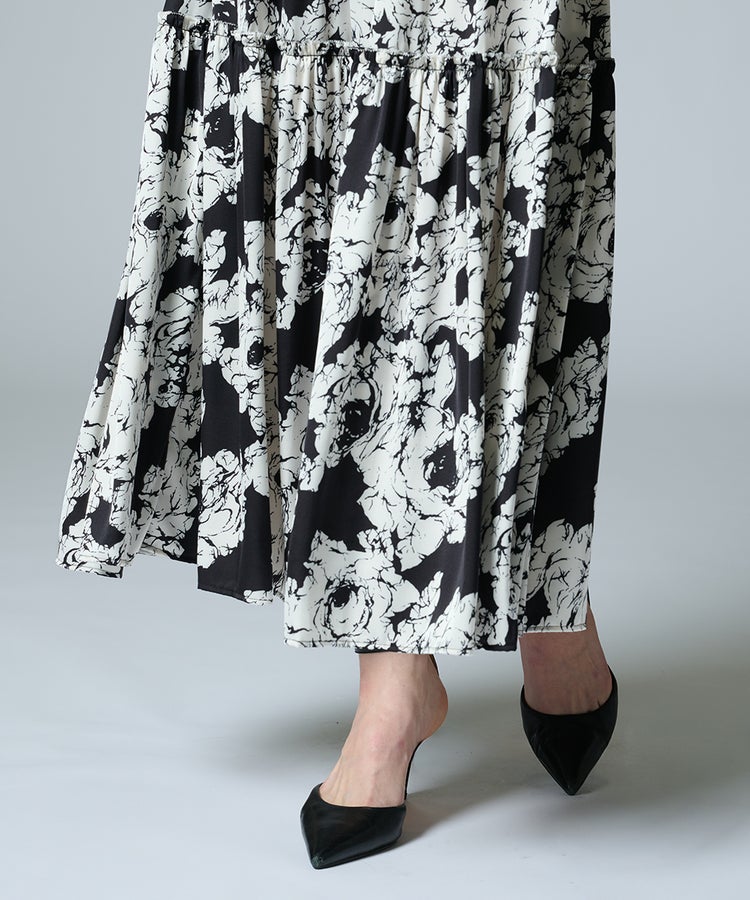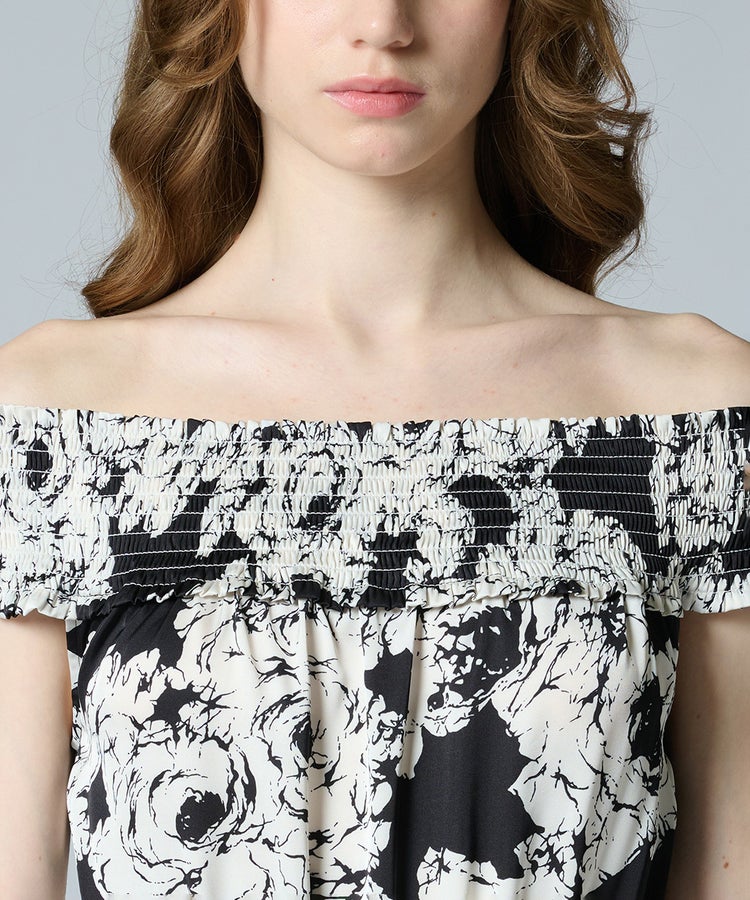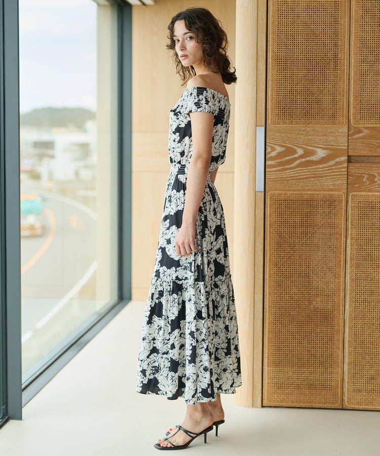CORCOVADO / モノトーンフラワー オフショルダーサテンドレス
