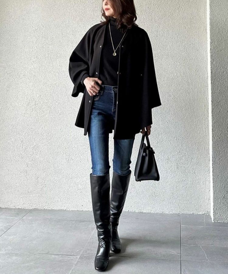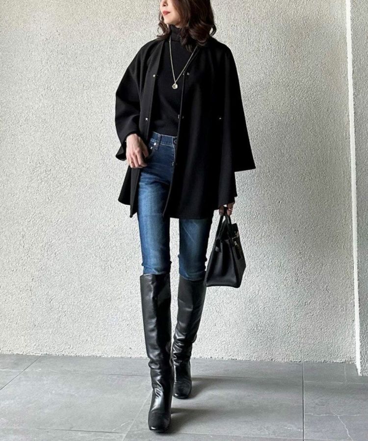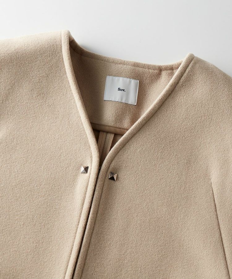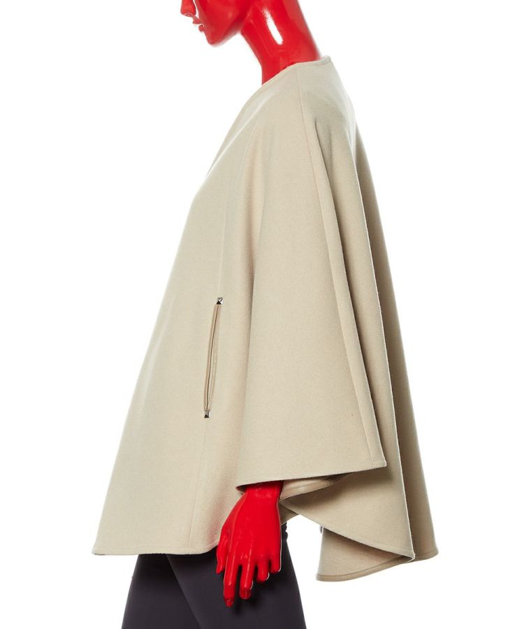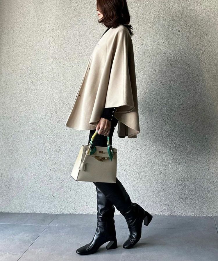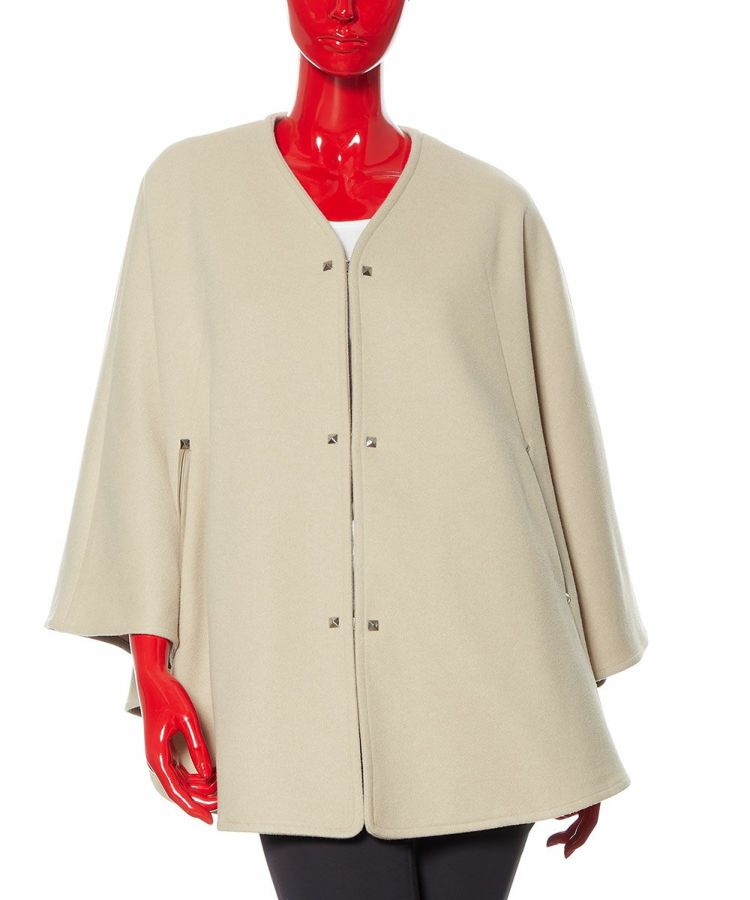 暖かでありながら、なめらかな表面感が上品な印象を与えるポンチョ。ポケットの入り口にレザーを施したりボタンはスタッズにするなど、ディテールまで抜かりなくデザインされています。ノーカラーのため、タートルネックをインナーに合わせたり、ストールを合わせたりとコーディネートの幅が広がるのも魅力的。秋冬のレイヤードコーデをスタイリッシュに楽しめる大人のアウターです。