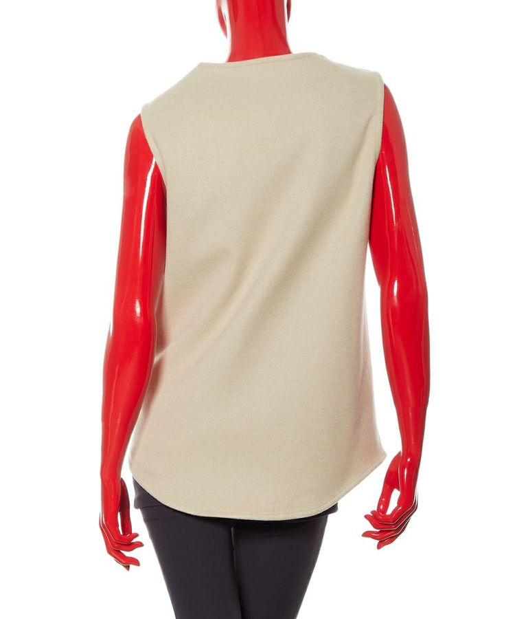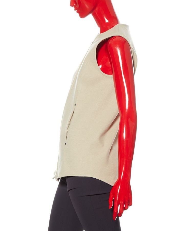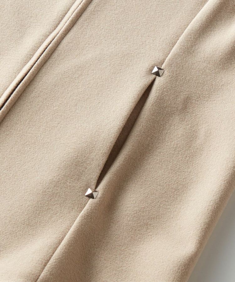 タートルネックトップスを合わせるだけで決まる、秋冬のレイヤードスタイルにぴったりなベスト。暖かでありながらも薄手なのでごわつかず、インナーとしても重宝します。なめらかな表面感が上品で大人っぽい印象をプラス。ややシェイプしたシルエットなので、インナーを重ねてもスタイリッシュに着こなせるのが魅力です。ポケット部分にはスタッズを施しており、さりげないアクセントに。