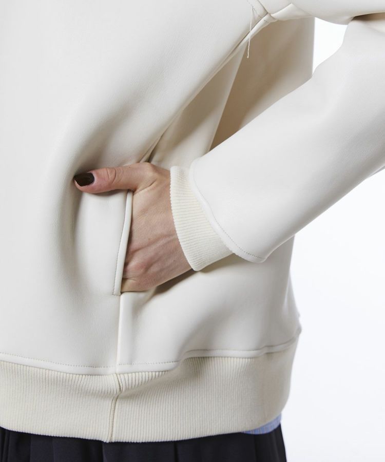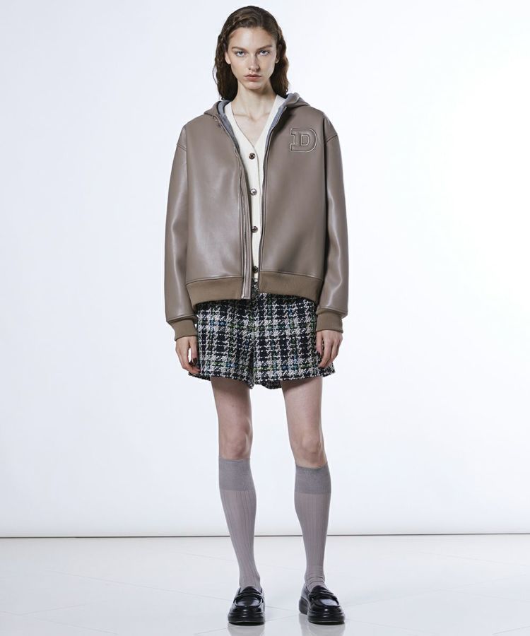 フェイクレザーをボンディングしたオリジナル生地を使用した今季イチオシのパーカージャケット。胸元にはレザーエンボス刺繍であしらった「H」がさりげないアクセントとなり、シンプルながら個性をプラスしました。軽さと保温性を兼ね備えて機能性も抜群。スタイリングやシーンを選ばず幅広く活躍します。
