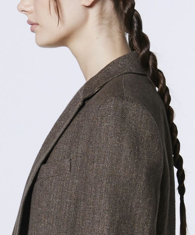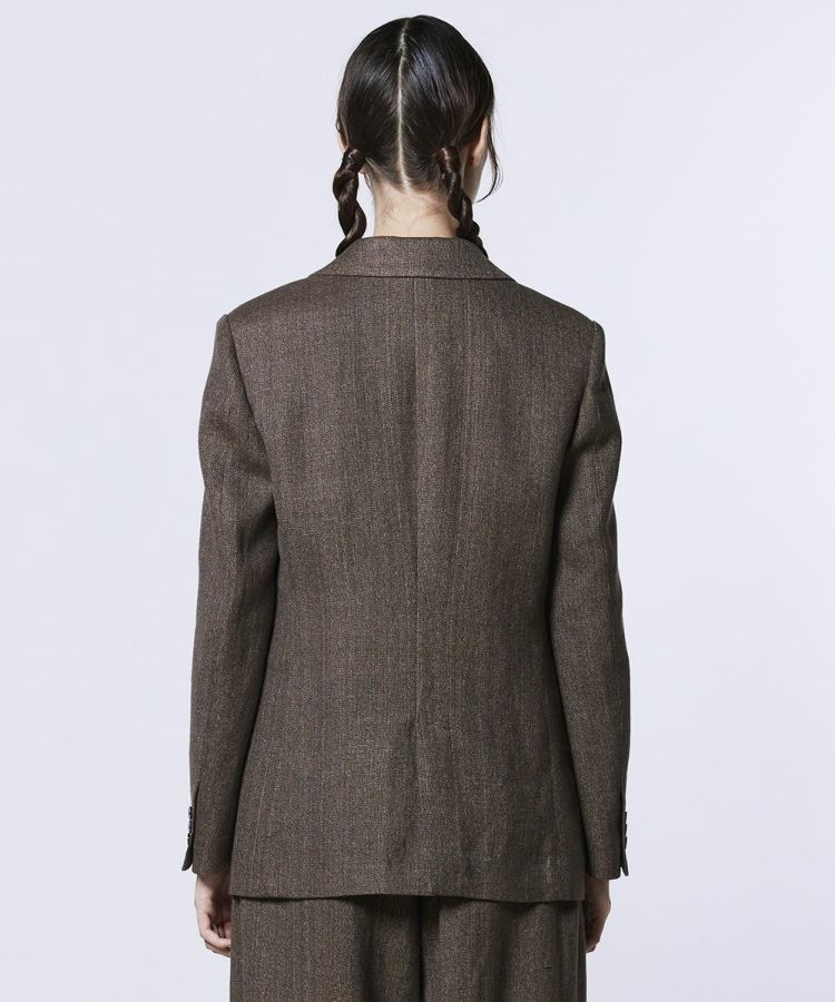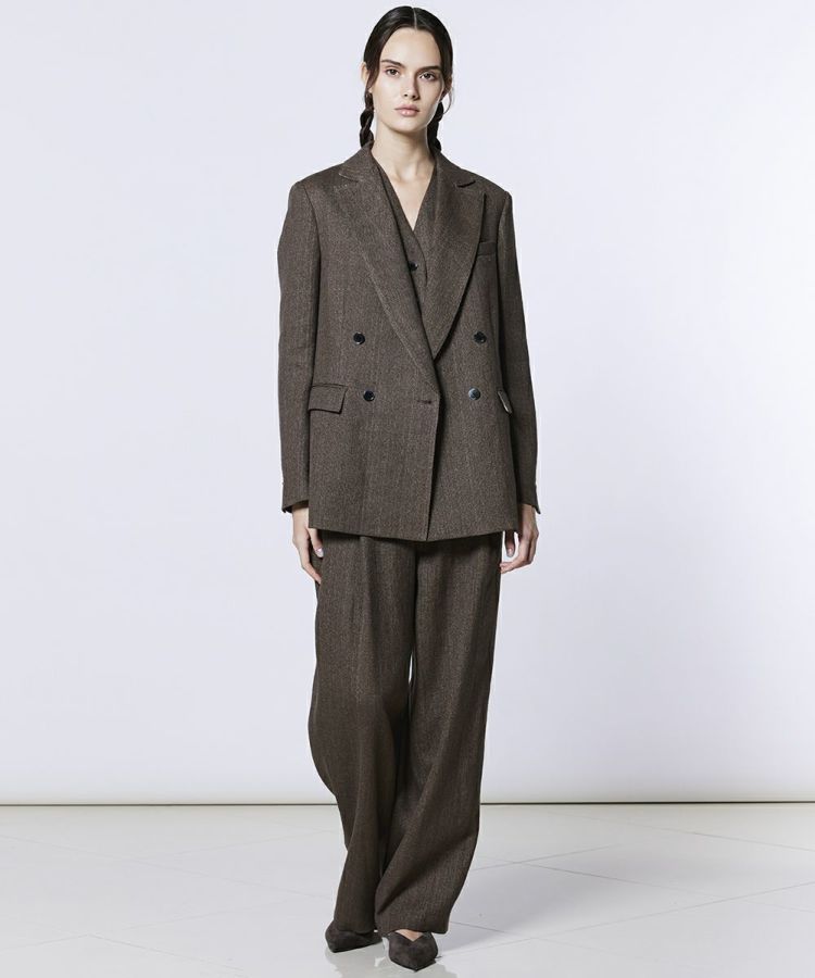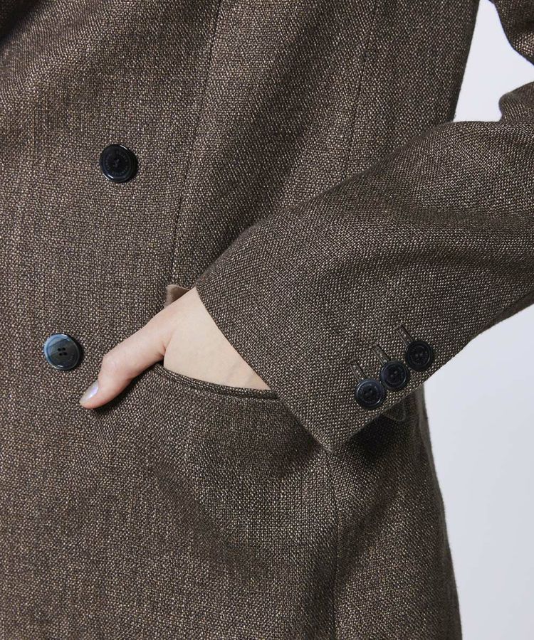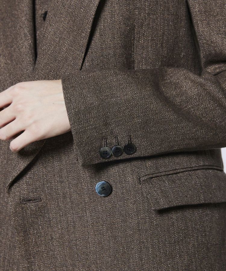 上品な雰囲気が漂うダブルジャケット。程よくゆとりをもたせたシルエットが、きちんと感の中にこなれた印象を演出します。カラーはモードなムードのオフホワイトと、着回し力の高いブラウンの2色展開。同素材のパンツ(型番:0306241261)やジレ(0304242261)と合わせれば、オケージョンシーンにも対応できる洗練されたセットアップスタイルが完成します。