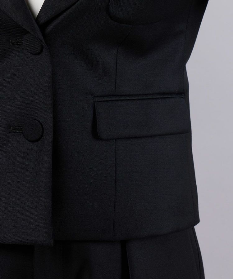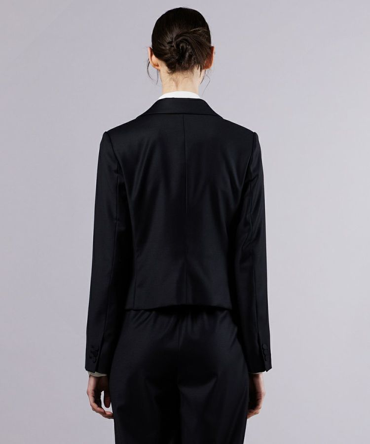 なめらかな手ざわりと上品な光沢感が際立つ、ウールとシルクの混紡糸を使用したジャケット。ウエストを絞った美しいシルエットがメリハリを生み、着るだけでスタイルアップが叶います。ショート丈のデザインはどんなボトムスとも合わせやすく、コーディネートの幅が広がるのも嬉しいポイント。ビジネスシーンはもちろん、フォーマルなオケージョンシーンにもぴったりです。
