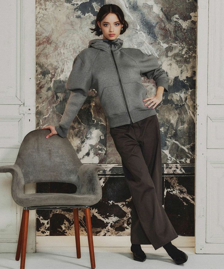 保温性に優れたダンボール素材を使用し、快適な着心地を実現したパーカー。立体的なペプラムデザインに仕上げ、フェミニンな要素をプラスしました。ふんわりと広がるシルエットが女性らしい華やかさを演出。ボトムスはシンプルにまとめるとバランスよく仕上がり、デイリーからお出かけまで幅広いシーンで活躍します。