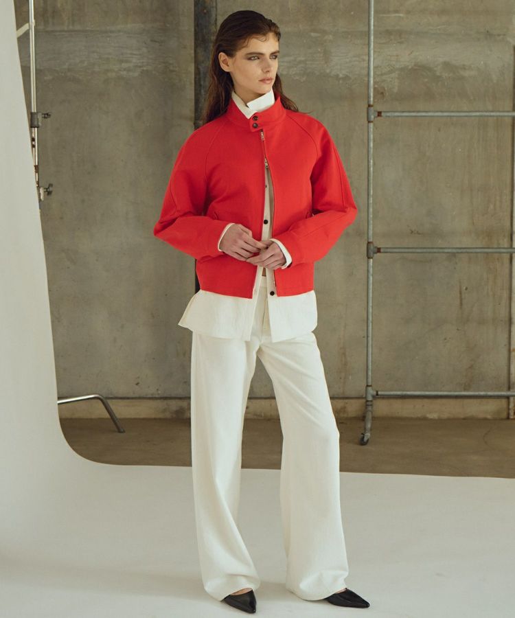 クラシカルなデザインが魅力のジップ付きブルゾン。目を惹くレッドとシンプルなブラウンの2色展開で、スタイルに合わせて選べます。ダブルジップ仕様により、着こなしのアレンジも自在で、気分やシーンに応じて楽しめるのも嬉しいポイント。襟付きのベーシックなデザインは、カジュアルなデニムスタイルにはもちろん、きれいめなパンツやスカートと合わせてもバランスよく決まり、幅広いコーディネートに活躍する一着です。