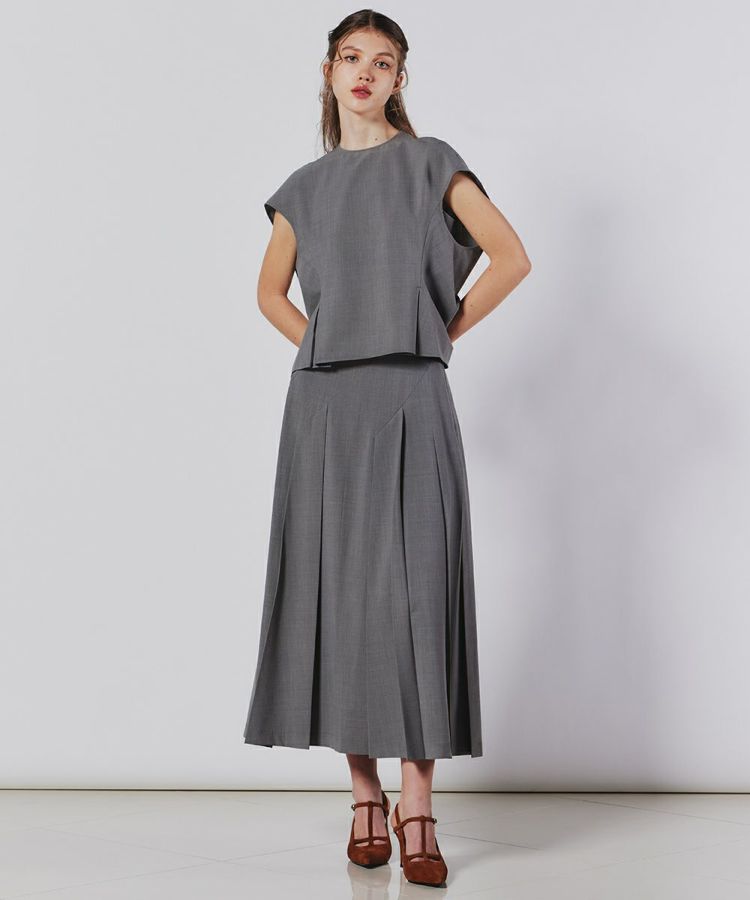 混紡糸マサキヤーンを使用した、ストレッチ性のある生地に仕上げたプルオーバー。なめらかな表面感と上品な光沢感が特徴で、ウール混ながらもシルクを思わせるハリ感があり、パリッとした着こなしが叶います。バックのさりげない開きがセンシュアルなムードをプラス。二の腕を自然にカバーしてくれるフレンチスリーブもポイントで、女性らしい丸みがありつつも腕のラインをきれいに演出してくれる一枚です。