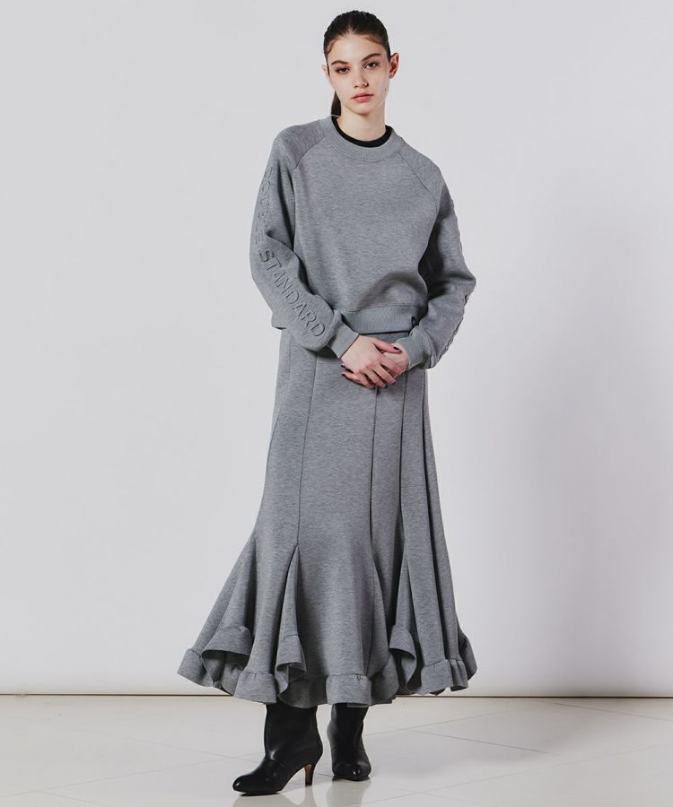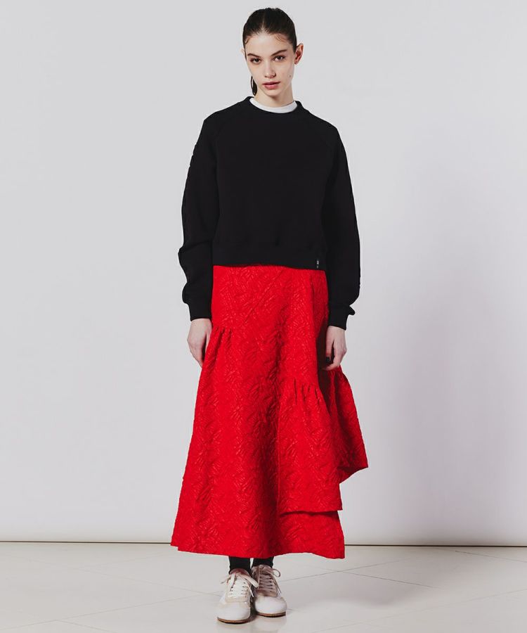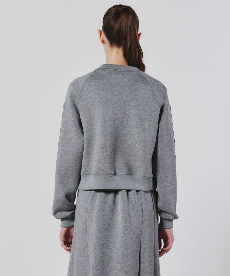 独特の膨らみ感と、なめらかな表面の質感が特徴になったダンボール生地のトップス。柔らかな着心地ながらもカジュアルになりすぎず、上品に着られるのがポイントです。左の袖にあしらった、立体的なロゴもさりげないアクセントに。ゆったりとしたシルエットながらも丈はややショートに仕上げることで全身のバランスを取りやすく、ボトムを選ばず合わせられるのが魅力です。