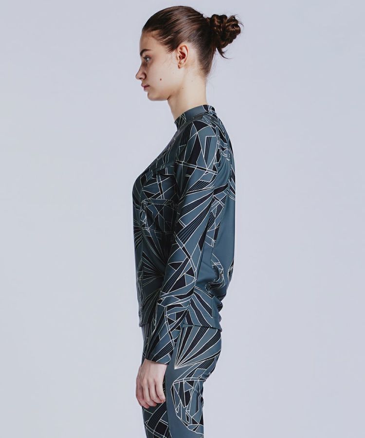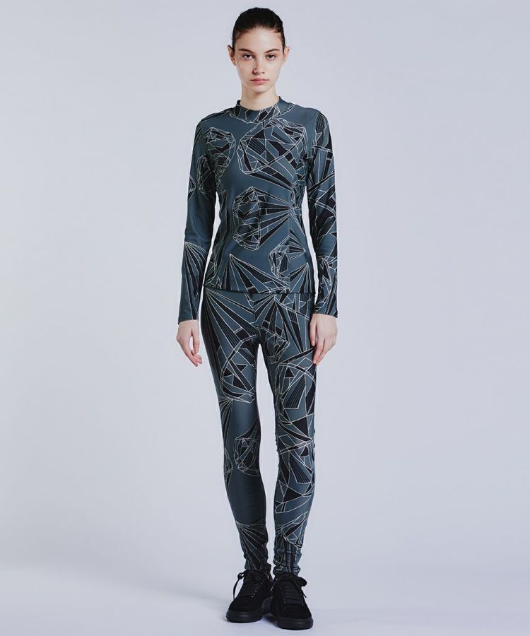 インパクトたっぷりのオリジナルプリントが目を引くカットソー。ストレッチ性と着心地にこだわっており、アクティブでもタウンユースでも活躍する一枚です。立体的なシルエットを実現する切り替えのステッチがポイントで、バストからウエスト、腰にかけてのラインがとてもきれいです。同素材のパンツ(型番2506041241)と合わせてセットで持っておきたい。