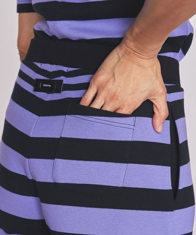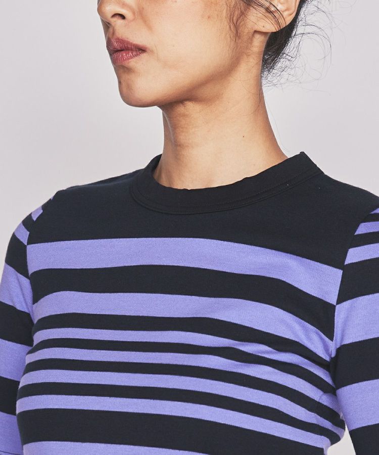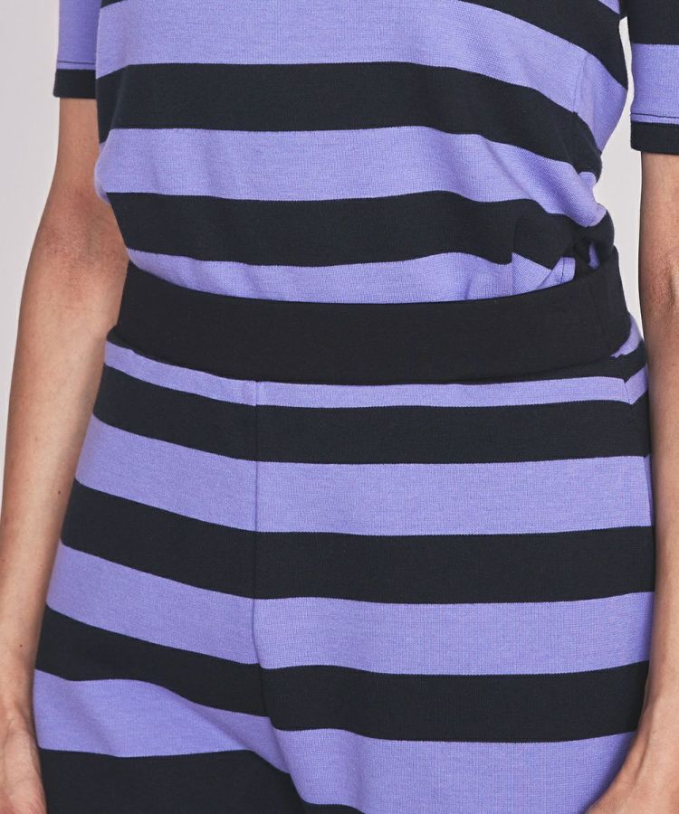 オリジナルのピッチで切り替えたパネルボーダーのTシャツとショートパンツのセットアップ。厚みのあるポンチ編みにストレッチ性のある糸をMIXし、しっかりとした肉感を実現しました。適度なフィット感が心地よく、ヘビロテしたくなる魅力があります。定番アイテムのボーダー柄でも、ダブスタらしい大胆なカラーリングと絶妙なシルエットで大人モダンに着こなせます。