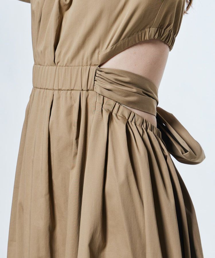 ふんわりとしたパフスリーブとウエストのリボンが女性らしさを引き立てる、フェミニンなワンピース。シンプルなデザインながらも、大胆に腰まわりを見せるカッティングで、ヘルシーな肌見せを実現しました。ストレッチ性に優れたブロード素材で快適な着心地をキープ。一枚でエレガントな佇まいを演出してくれる大人のワンピースです。