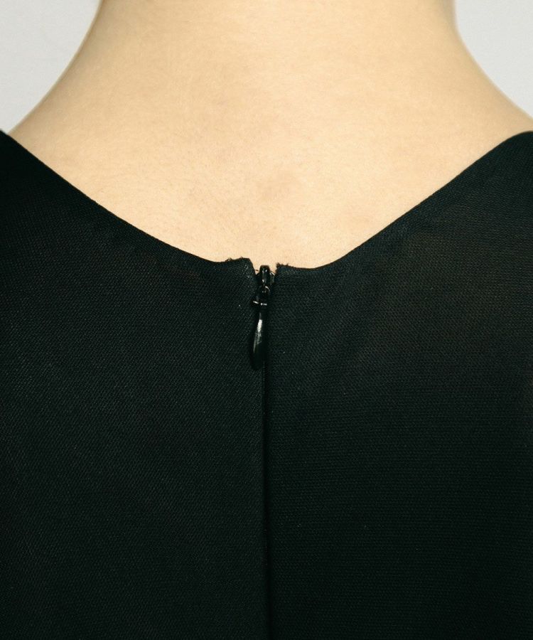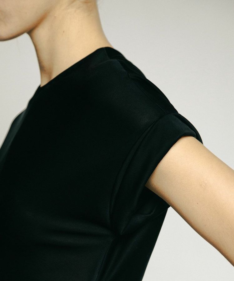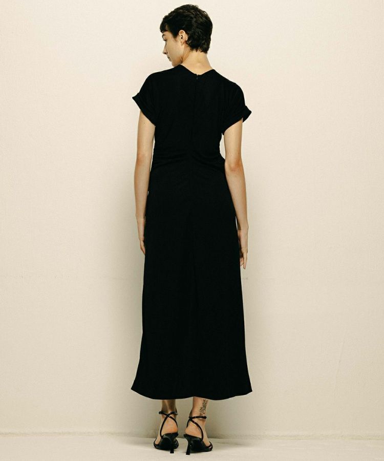 ボディラインを拾わずも凛とした佇まいが実現する、シンプルなデザインのロングドレス。ウエストのサイドにカットデザインを施し、センシュアルな雰囲気をプラスしました。シルクに近いトリアセテート100%の糸を使用。黒の濃度を最大限に引き出すトリアセテート原料の良さを活かし、エレガントさを表現しています。パーティーシーンにも活躍する一着。