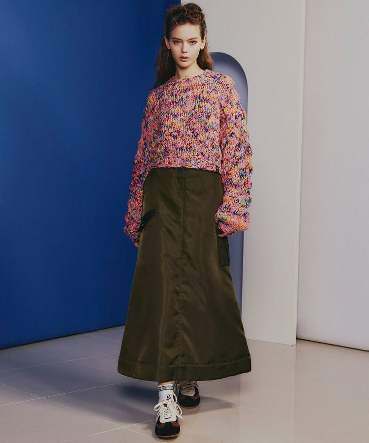 女性らしさを出してくれるAラインシルエットで仕上げた、中綿入りのキルトスカート。パリッとしたハリ感があり、きれいめカジュアルな印象を与えてくれます。見た目よりも軽い穿き心地で、カジュアルなニットやスウェットはもちろん、ブラウスとの相性も抜群。寒さ対策目線でも100点のアイテムです。