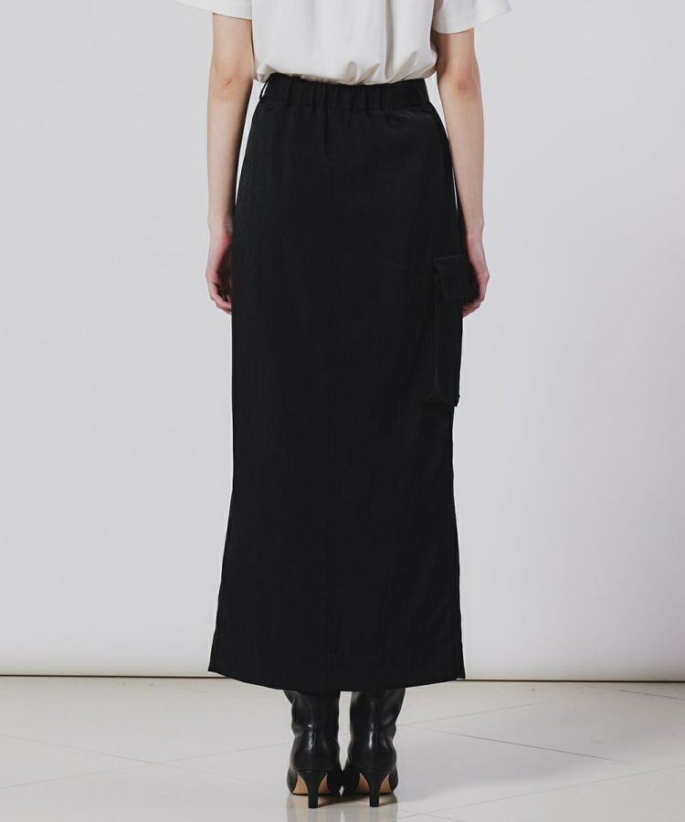 カジュアルな印象のオックス生地に、縦横ともにフィラメントの太番手糸を使用し光沢感を出したロングスカート。さらに塩縮風加工を施すことで独特な風合いをプラスし、きれいめに仕上げました。しっかりとした発色も魅力になり、コーディネートに深みを持たせてくれる大人のミリタリーアイテムです。