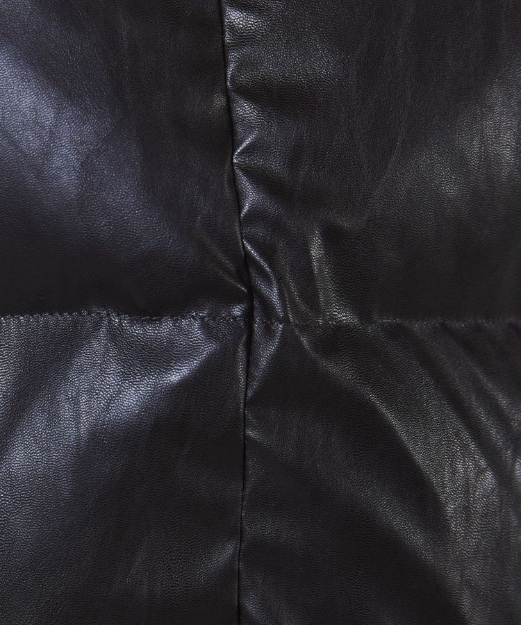シックな雰囲気漂うフェイクレザーを使用したダウンベスト。たっぷりとフェザーを詰め込むことで、優れた保温性を実現しました。ボリューム感がありながらも、クロップド丈のコンパクトなシルエットでカジュアルすぎずきれいめな印象に。スラックスやロングスカートなど合わせるとバランスよくまとまります。