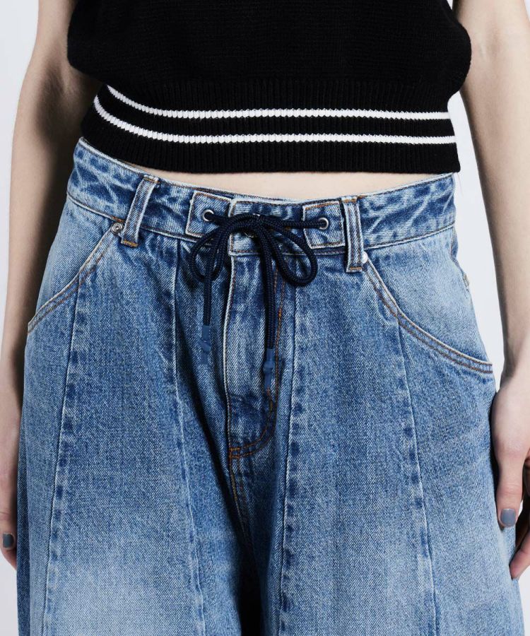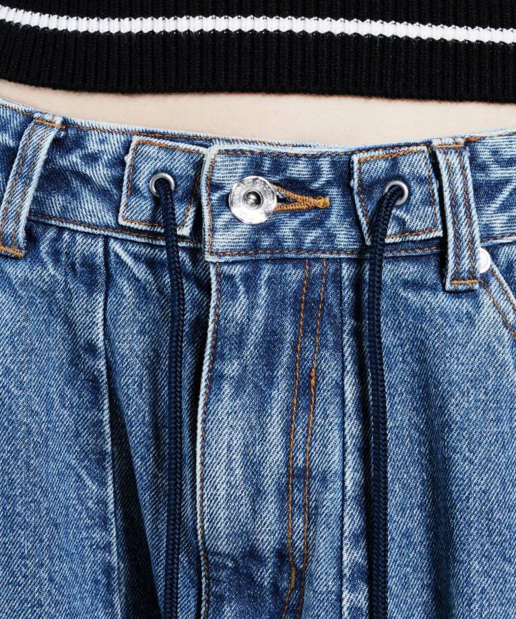 ゆったりリラクシンなシルエットがかわいいデニムパンツ。ウエストと裾のダーツ処理が、独特のボリューム感を出しています。心地よいインパクトがあり、コーディネートに変化を与えてくれるため、シンプルなトップスを合わせてもサマになるのがうれしいポイント。ヒップラインがきれいに見えるのも魅力です。