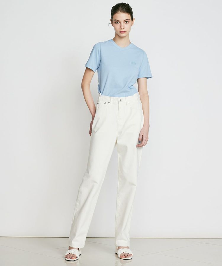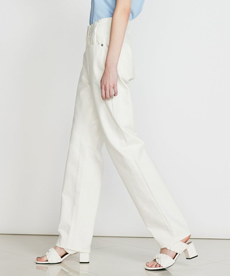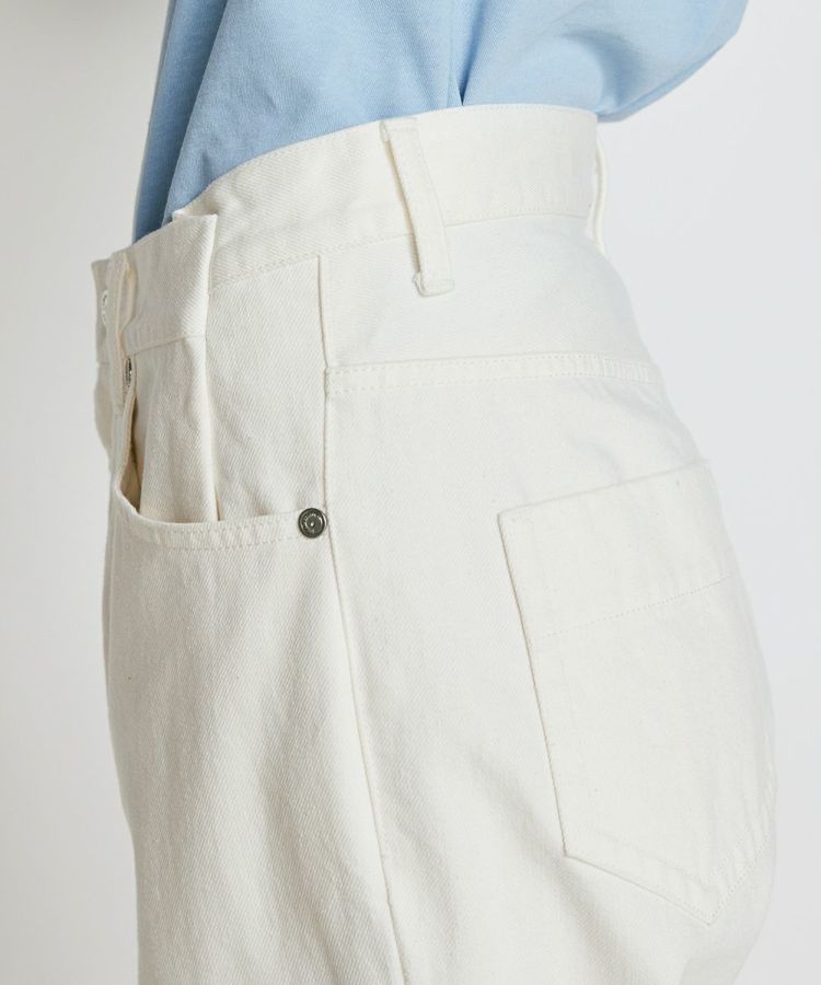 トップスを選ばず活躍する、ゆるやかなテーパードシルエットのデニムパンツ。きれいめに見えるモノトーンカラー展開です。すっきり感がありながらも程よいゆとりがあるため、カジュアルでもきれいめにも合わせられるのが魅力。バックにあしあらったイエローのネームラベルが、コーディネートのアクセントになります。