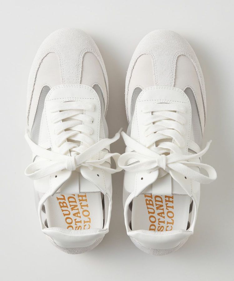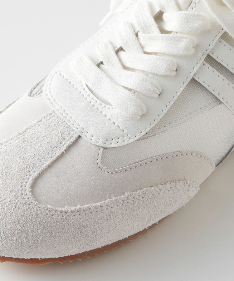 トレンドライクなデザインと、季節感たっぷりなシアーなメッシュ素材を組み合わせたスニーカー。これひとつでコーディネートに抜け感が出る一足です。フラットなソールとベーシックなカラーリングなので、合わせる服を選ばないのもうれしいポイント。カジュアルはもちろん、きれいめコーデとの相性は抜群です。