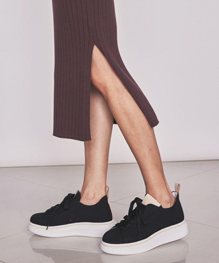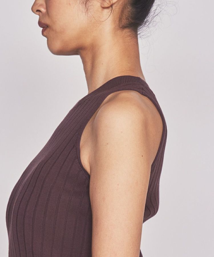 目面がきれいで、ドライなタッチ感のニットワンピース。ミラノリブで適度にしっかりとした肉感も特徴です。リブ編みで縦のラインがあるので、すっきりとした印象に見えるのもうれしいポイント。裾には大胆なスリットが入り、歩くたびセンシュアルなムードをまとうことができます。スニーカーやパンプスなど、足元次第でさまざまなシーンで活躍するアイテム。