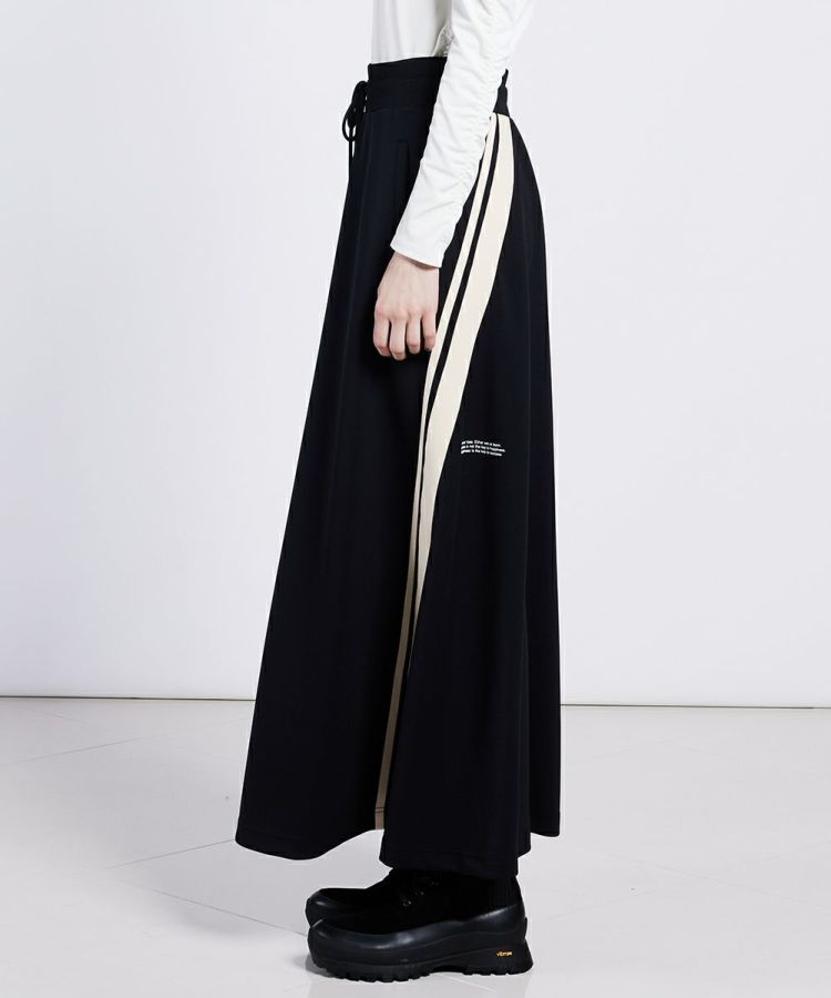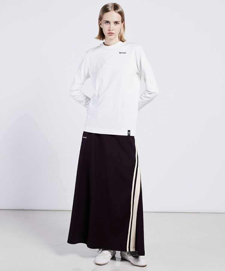 クラシカルなカラーが新鮮なジャージスカート。3枚剥ぎの大掛かりなマキシスカートで、シルエットにインパクトを出してくれるアイテムです。マットな質感がファッショナブルで、他にはない幅のオリジナルのラインテープや極小文字の圧着テープ、刺繍がアクセントになっています。ストレッチ性・着心地・型崩れしにくい・紫外線遮断率が高いなど、機能性に富んだダンボール生地も魅力的。単品はもちろん、同素材のトップス(型番:2505070244)とセットアップで着るのもおすすめ。
