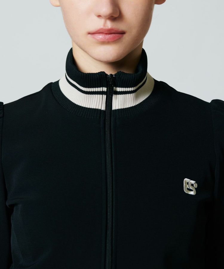ストレッチ性に優れたジャジーライクな素材を使用したジャケット。キックバック性に優れ、動きやすくシワになりにくいため、スポーティーでありながらきれいめに着用できるのが魅力です。コンパクトなシルエットに、ギャザーを効かせたショルダーがほんのりと甘いアクセントに。後ろ裾のみ編み立てのリブで、前後の変化を楽しめるデザインになっています。同素材のスコート(型番:2506200243)とセットアップでゴルフウエアとして楽しむのもおすすめ!