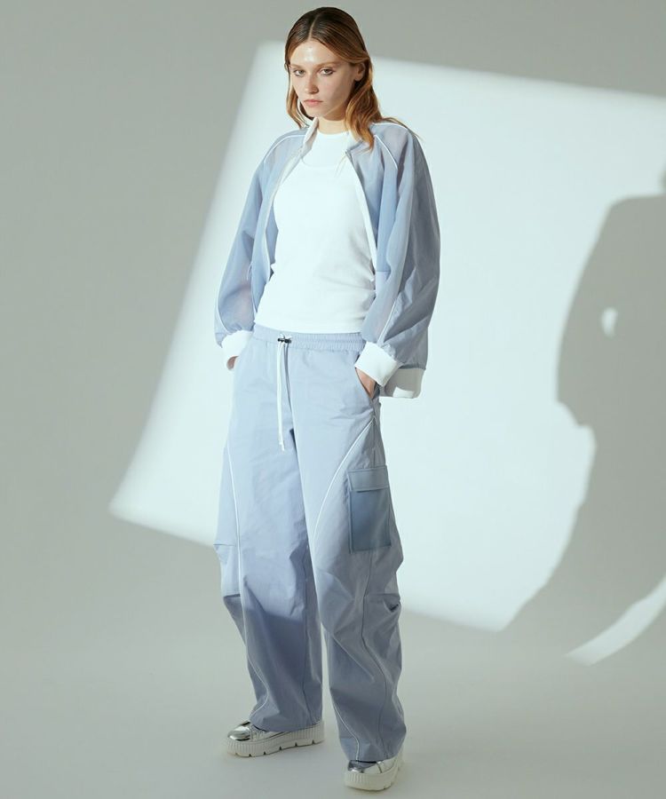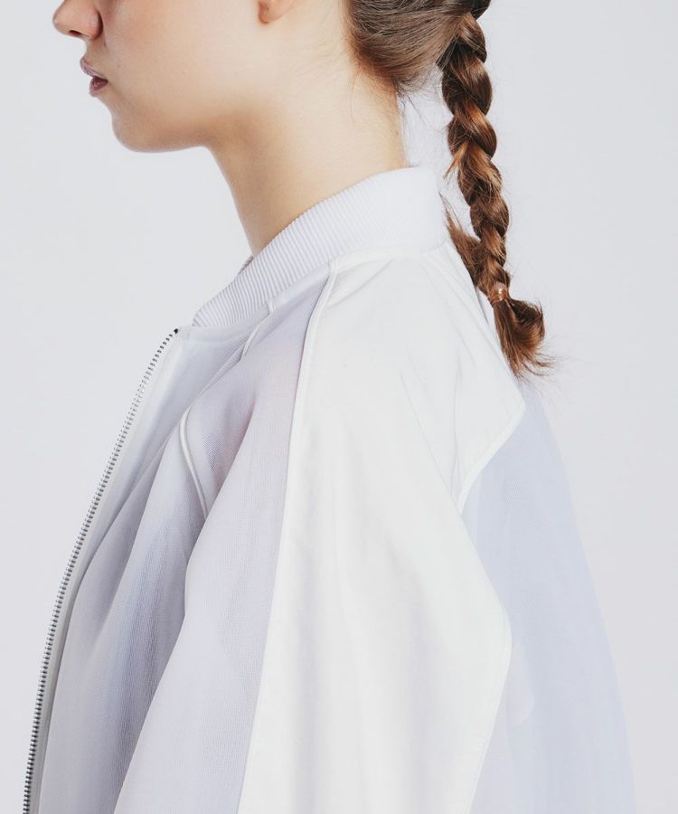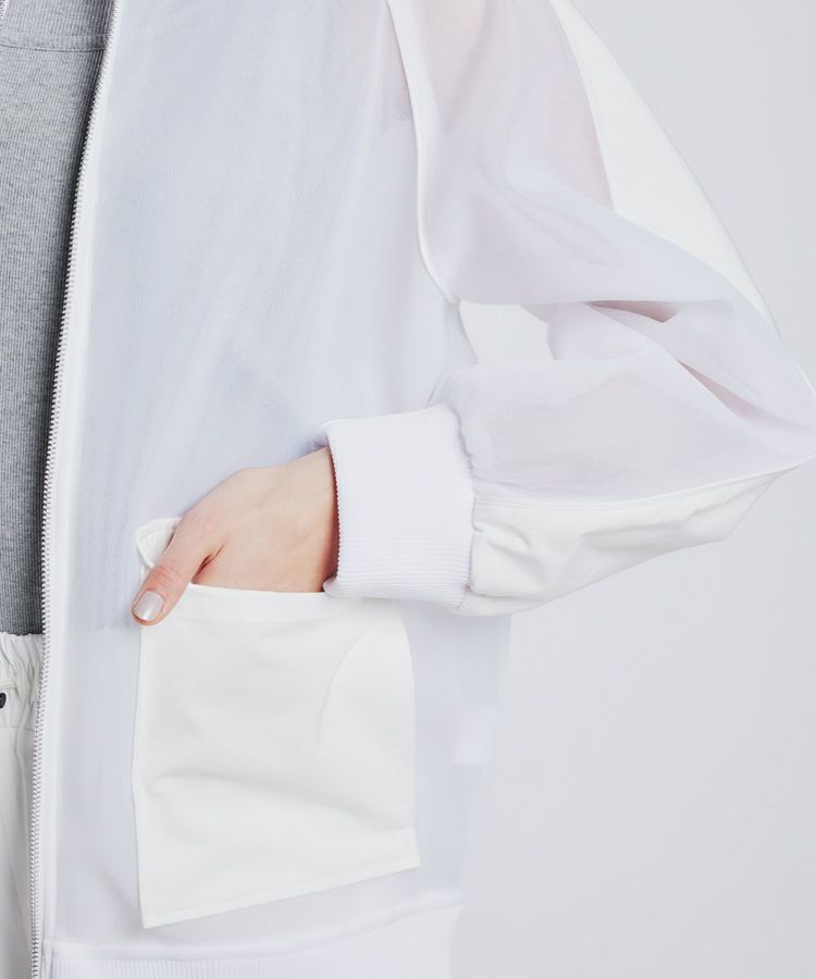 上品な表面感とふくらみ感が特徴のダンボール生地で作ったブルゾン。程よいシアー感があり、春夏にぴったりの軽やかさです。ショルダーやポケットは生地を切り替え、さりげないデザイン性をプラス。腕のラインがきれいに見えるため、野暮ったくならずすっきり着られるのも魅力です。カジュアルなボトムにも、フェミニンなスカートにも合わせやすいのもうれしいポイント。