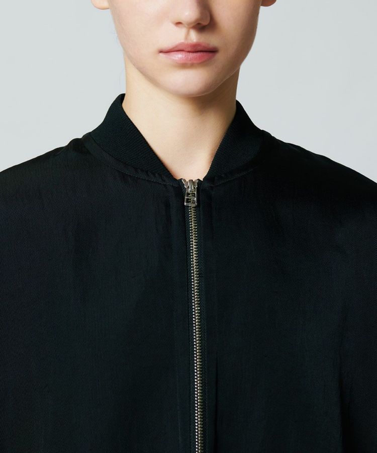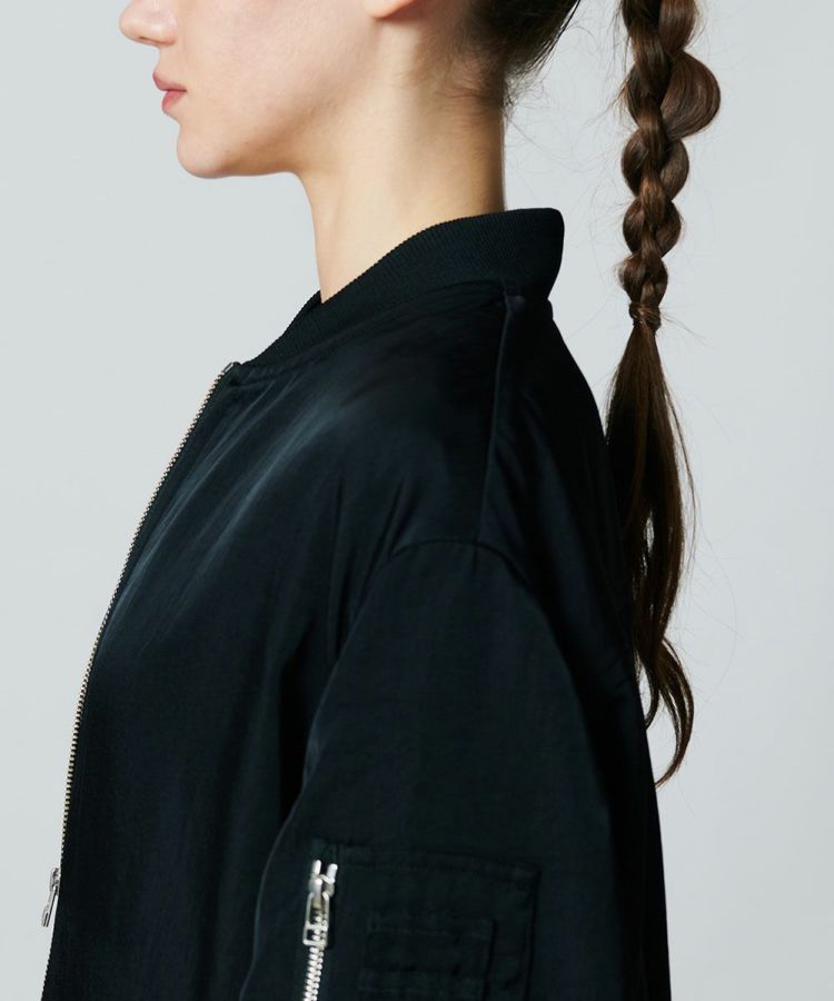 MA-1のディテールを取り入れたロング丈のコート。味わいのあるランダムなシワ加工を施すことで、ヴィンテージライクな風合いに仕上げました。太番手のナイロン糸を使用した重厚感のある素材ながらも、裏地を無くし、軽やかに。サイドのジップがアクセントになっています。撥水機能付なのもうれしいポイント!