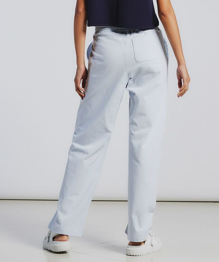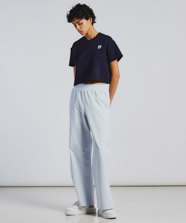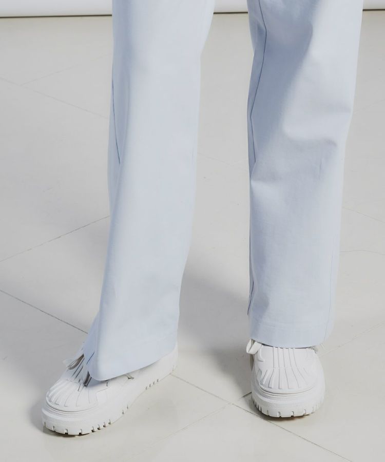 カットソーでおなじみの天竺生地を、ワイドパンツで実現。微強撚糸を引き揃えた天竺で、極限までハイゲージで編み上げることでしっかりとした肉感を出しています。透けにくくきれいな目面に加え、絶妙な光沢感も特徴。カジュアルながらも上品に見えるのが魅力です。接触冷感、透湿性に優れていて穿き心地は抜群。シルエットもとても美しい一本です。