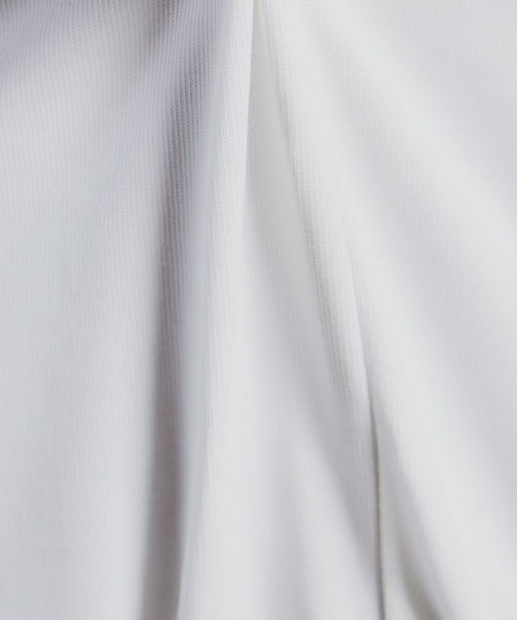 アメリカンスリーブがヘルシーな印象を与えるトップス。生地には微強撚糸を引き揃えて編んだ天竺を使用しています。極限までハイゲージで編んでいるため、透けにくく、きれいな目面を実現。絶妙な光沢感も特徴で、カジュアルながらも上品に見えるのが魅力です。接触冷感、透湿性に優れ紫外線防止効果ありと機能面も抜群。厳しい残暑でも快適なおしゃれが楽しめるアイテムです。
