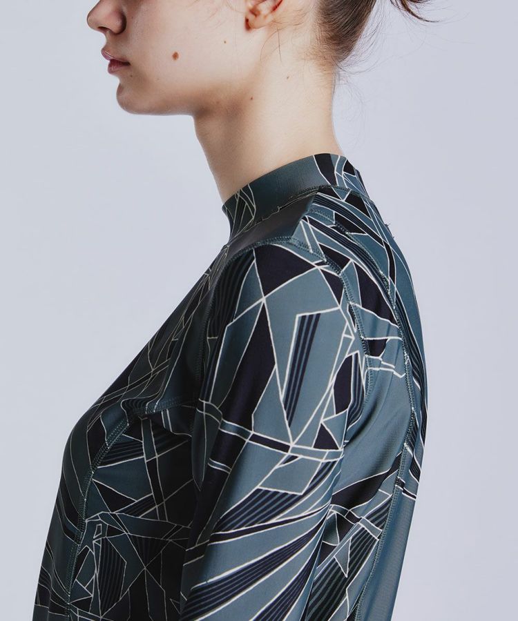インパクトたっぷりのオリジナルプリントが目を引くカットソー。ストレッチ性と着心地にこだわっており、アクティブでもタウンユースでも活躍する一枚です。立体的なシルエットを実現する切り替えのステッチがポイントで、バストからウエスト、腰にかけてのラインがとてもきれいです。同素材のパンツ(型番2506041241)と合わせてセットで持っておきたい。