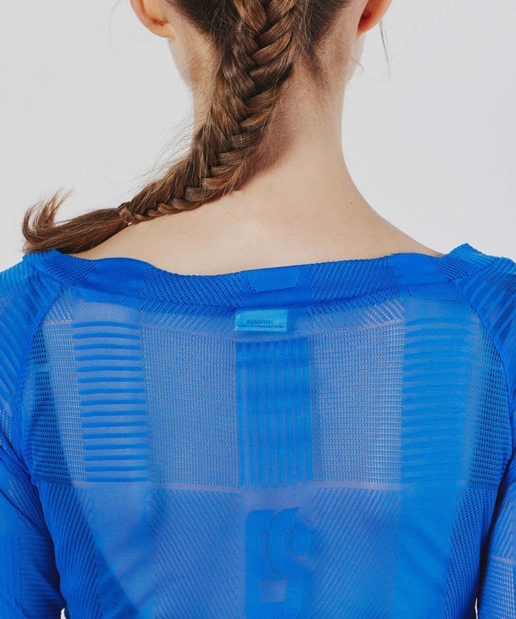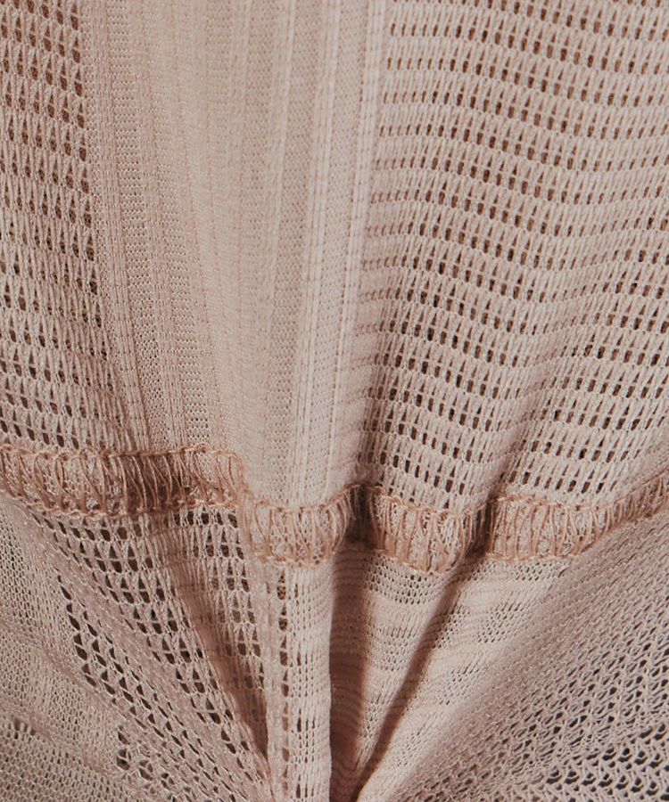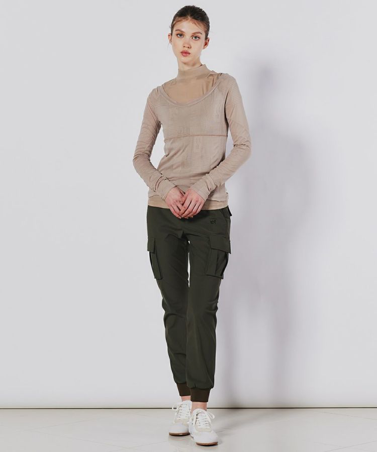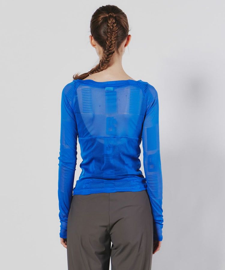 ESSENTIAL史上最薄のPU混ジャガード生地を使用したトップス。一枚のジャガードの上にさらに柄違いの透けるジャガードを組み合わせ、凝ったデザインに仕上げました。完全オリジナルのニット生地で、編むこと、染色ともに難易度の高い製法で仕上げたジャパンクオリティが光る一枚。インナーとしてはもちろん、これ一枚でコーディネートがサマになります。