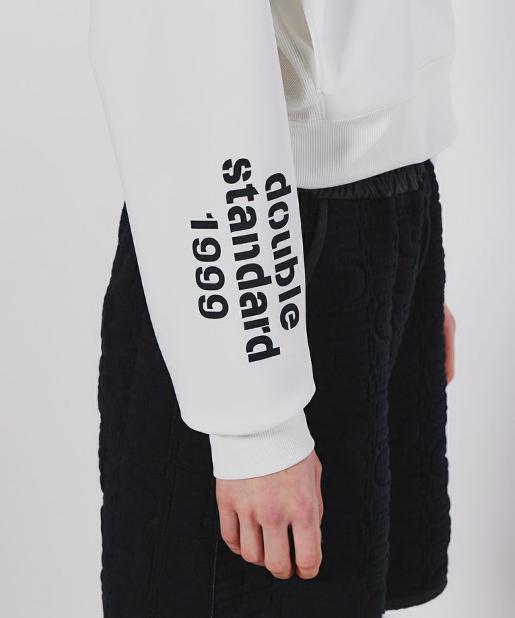 薄手のダンボール素材を使用したプルオーバー。マットな質感や、サイドにあしらった同色のリブが上品で大人っぽい印象を与えます。軽量でストレッチ性があり、着心地の良さは抜群。紫外線カット機能や型崩れにしくく、シワになりにくいなど、機能性に富んでいるのもポイントです。左胸の浮き上がり刺繍と、両袖にあしらったプリントがアクセントになっています。