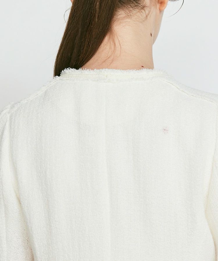 ドビー組織の表情を際立たせたジャケット。リネンラミー双糸強撚糸とリネン3本撚りの糸を使用、染色過程で解撚手法を施した生地を密度を甘くして撚りあげることでもみほぐし、加工で柔らかさと膨らみをプラス。こだわりの詰まった、素材が活きる一着に仕上がりました。ノーカラーなのでカジュアルコーデにも取り入れやすいのも魅力です。