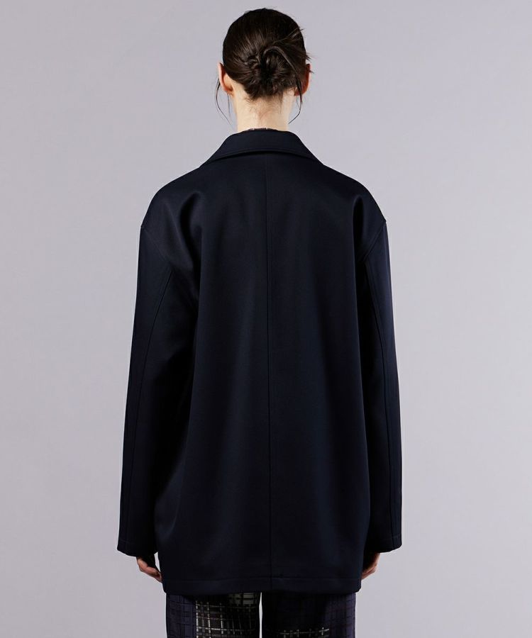 独特の膨らみとハリ感が特徴的なポリエステルツイル素材で仕上げたアウター。程よく厚みがありながらも着心地は軽やかに仕上げ、長時間着用してもストレスなく過ごせます。肌なじみの良いネイビーカラーが落ち着いた大人の上品さを演出。ミドル丈のすっきりとしたシルエットとシンプルなデザインは、カジュアルからきれいめまで幅広いコーディネートにマッチしてくれます。