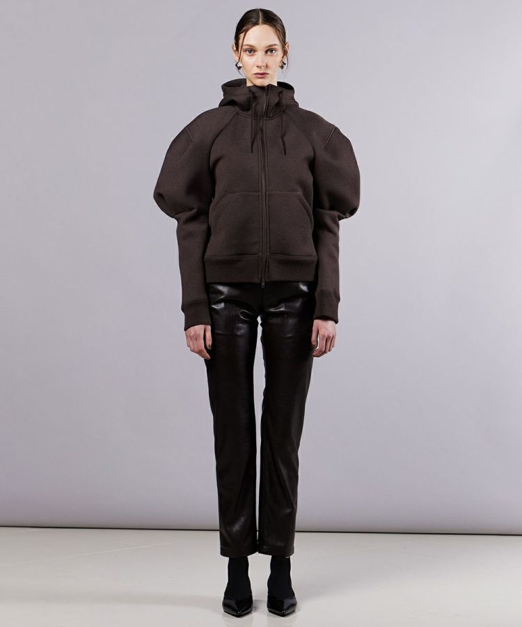 保温性に優れたダンボール素材を使用し、快適な着心地を実現したパーカー。立体的なペプラムデザインに仕上げ、フェミニンな要素をプラスしました。ふんわりと広がるシルエットが女性らしい華やかさを演出。ボトムスはシンプルにまとめるとバランスよく仕上がり、デイリーからお出かけまで幅広いシーンで活躍します。