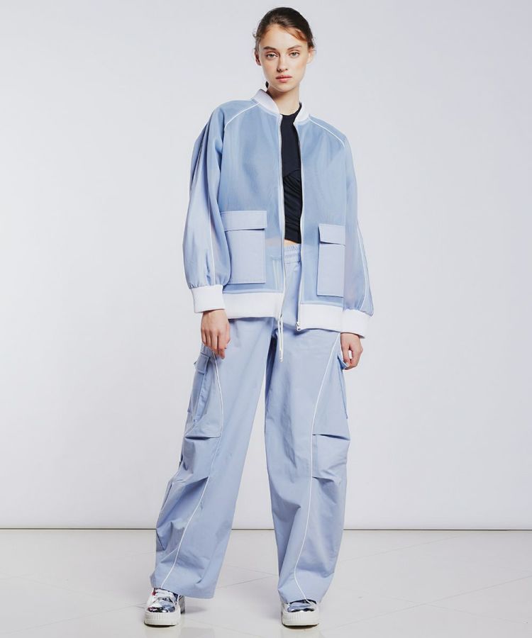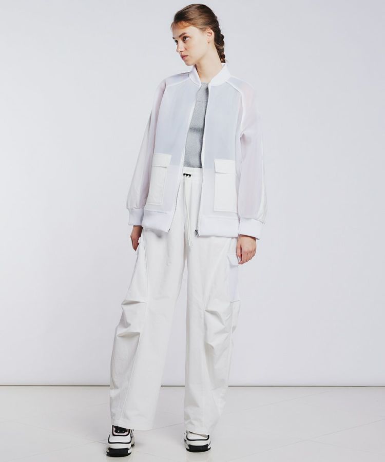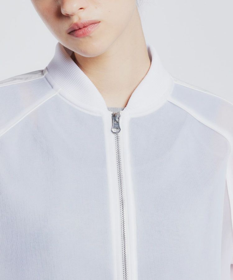 上品な表面感とふくらみ感が特徴のダンボール生地で作ったブルゾン。程よいシアー感があり、春夏にぴったりの軽やかさです。ショルダーやポケットは生地を切り替え、さりげないデザイン性をプラス。腕のラインがきれいに見えるため、野暮ったくならずすっきり着られるのも魅力です。カジュアルなボトムにも、フェミニンなスカートにも合わせやすいのもうれしいポイント。