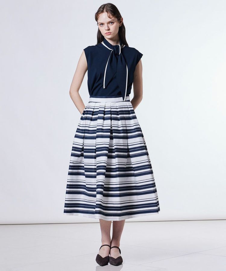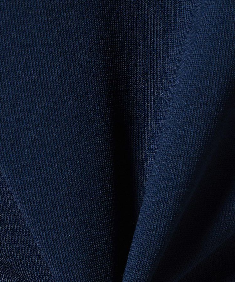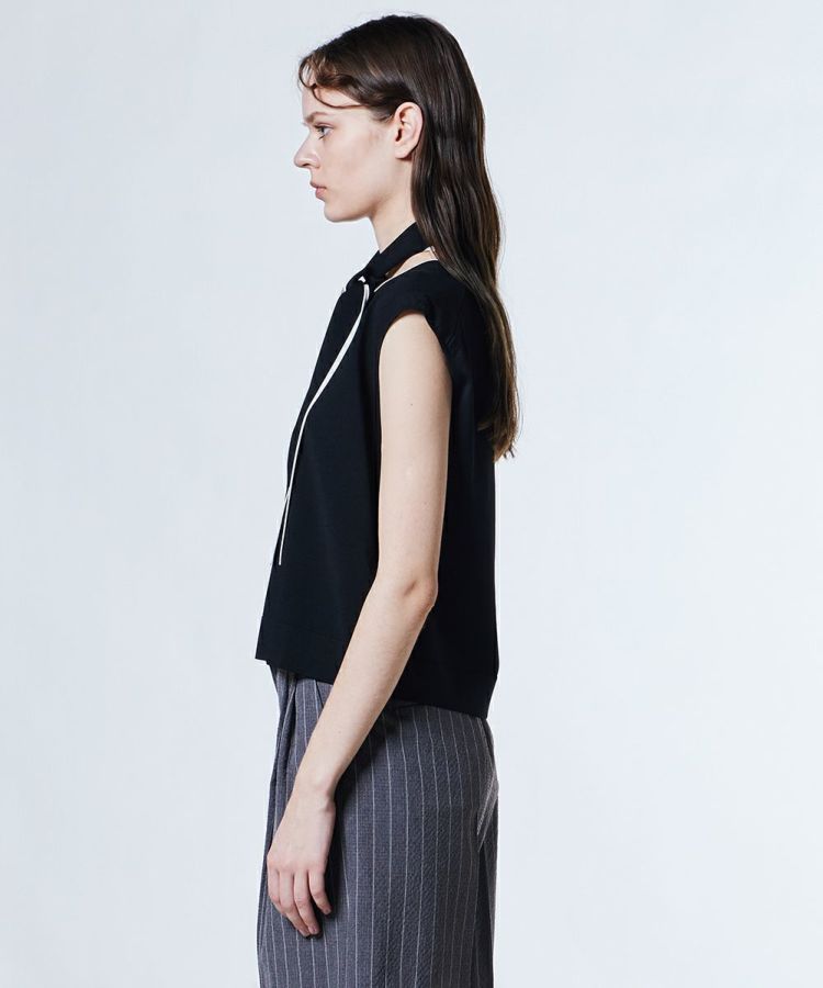 ストレッチ性に優れ、生地の落ち感も美しいボウタイニット。袖をフレンチスリーブに仕上げたことで、気になる二の腕まわりをさりげなくカバーしてくれます。首元のボウタイは自由自在にアレンジが可能。リボン結びをするとフェミニンに、ネクタイのように使うとクールなレディライクな印象になり、一枚で異なった表情を見せる万能なアイテムです。