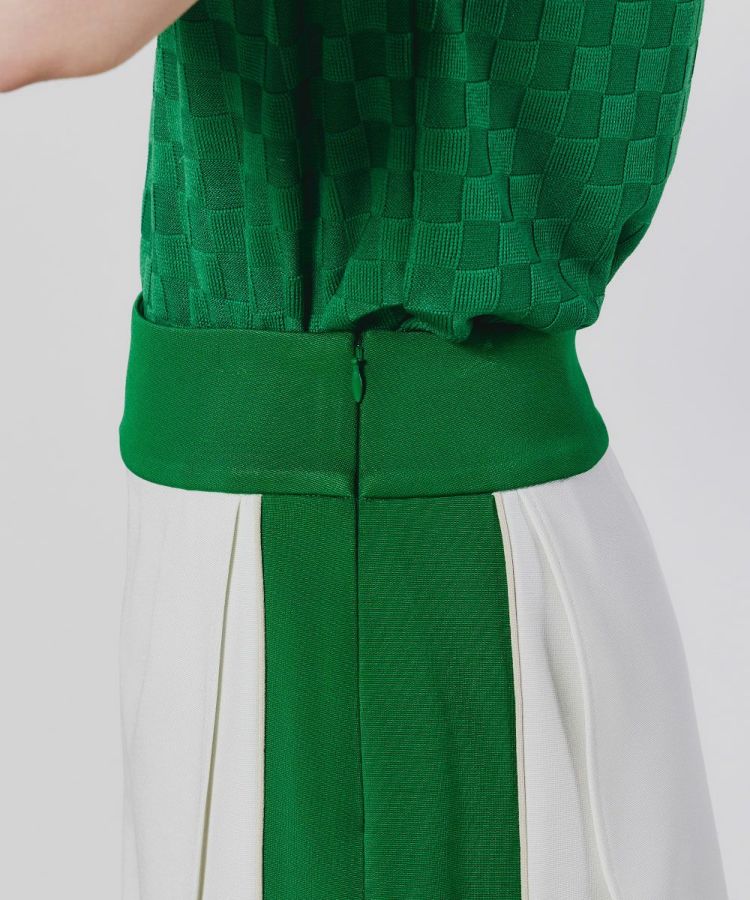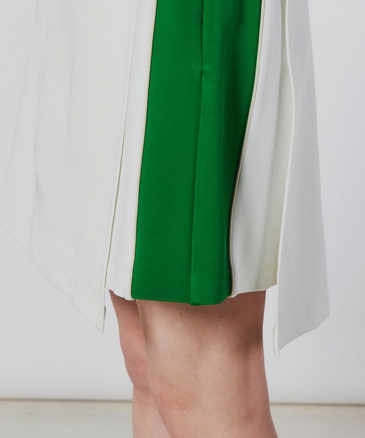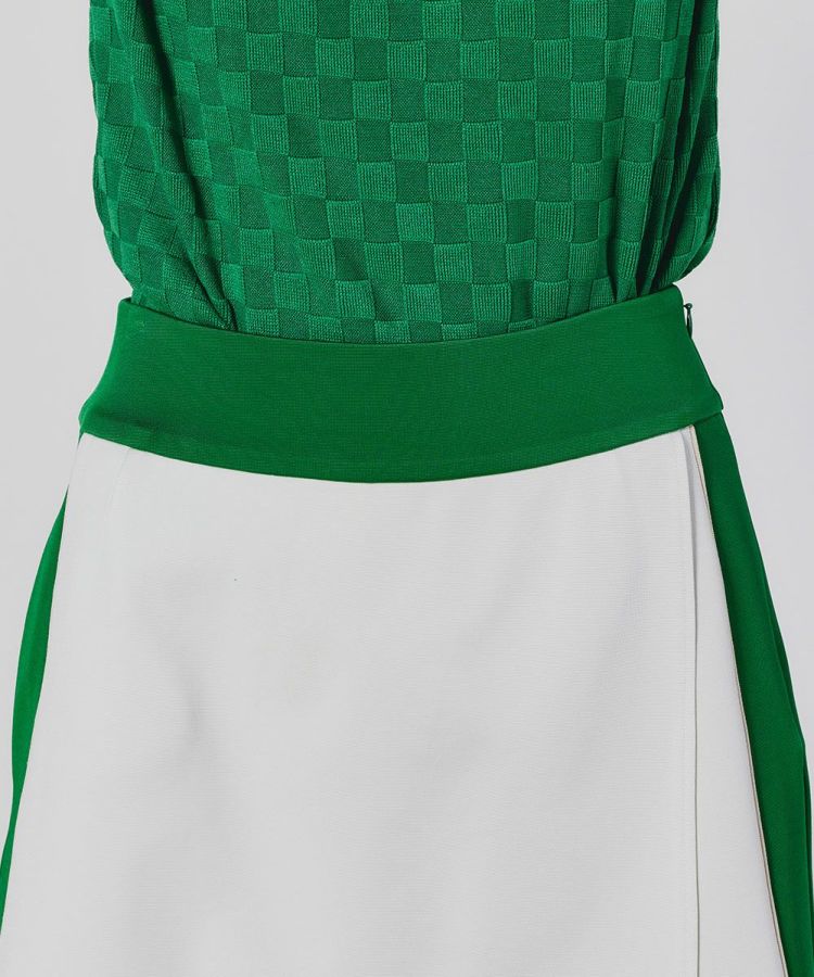 ストレッチ性に優れたヴィスニーポンチ生地を使ったミニスコート。サイドのラインがスポーティーな印象を与えるとともに、縦のラインを強調するためヒップラインをすっきり見せてくれるのがうれしいポイントです。ウエストは太めのラインデザインにすることで、メリハリをプラス。全身のバランスが決まりやすいのが魅力です。