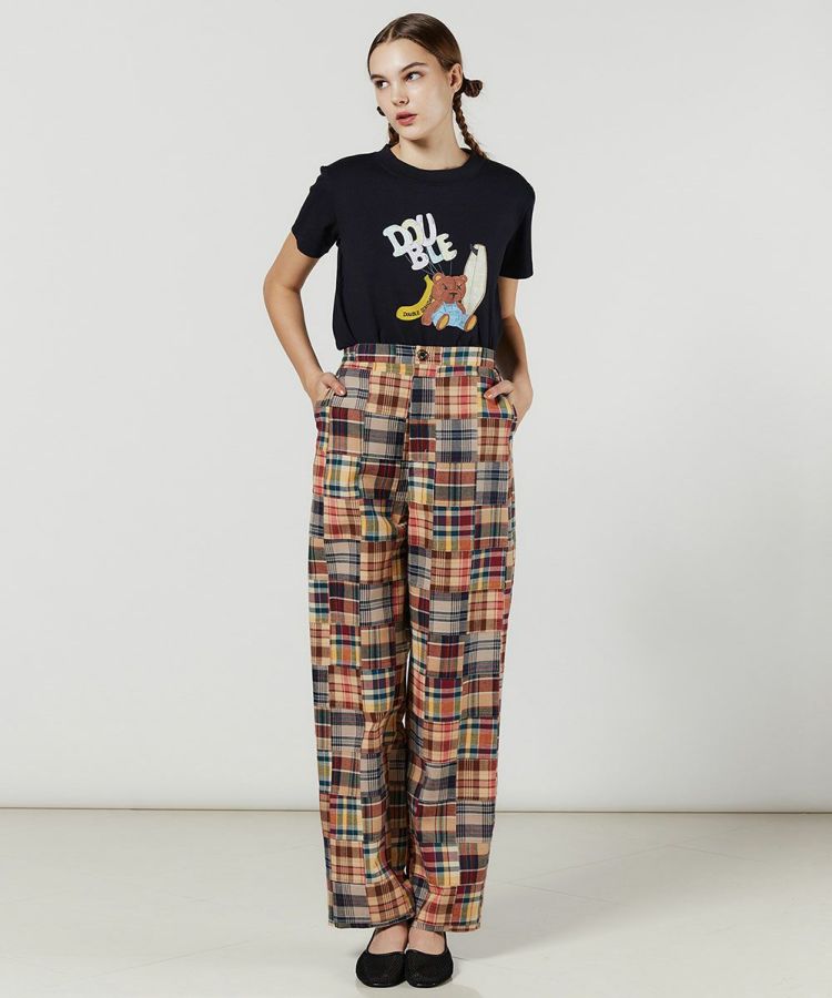 DSC / パッチワークチェックワイドパンツ(SALE)