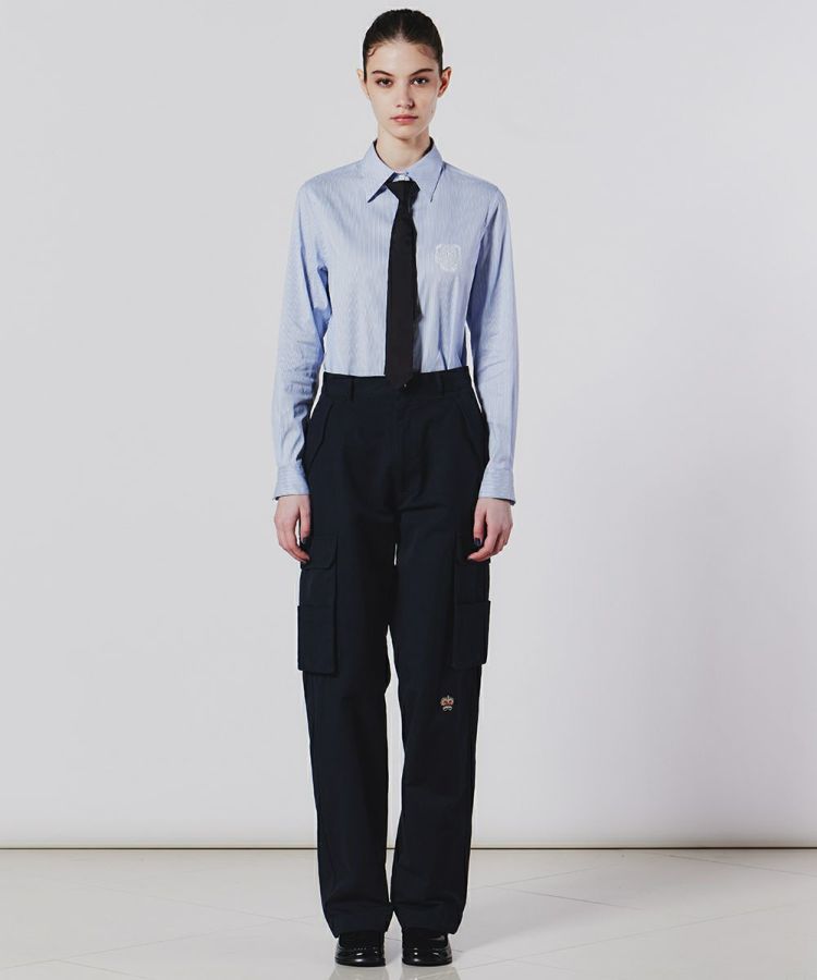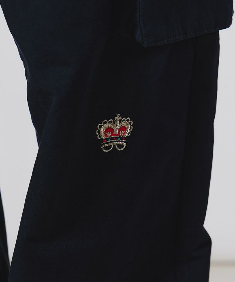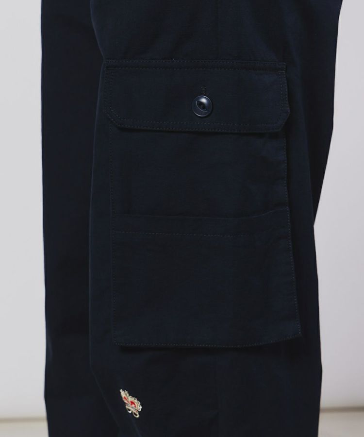 トレンドライクなコーディネートを叶えてくれるカーゴパンツ。ゆったりとしたシルエットながらも無骨になりすぎず、すっきりとした印象を与えるデザインに仕上げました。左膝のエンブレムや、バックにあしらった発色の良いパッチがアクセントに。サイドの立体的なポケットが、ヒップや太もものラインを自然にカバーしてくれるのもうれしいポイントです。