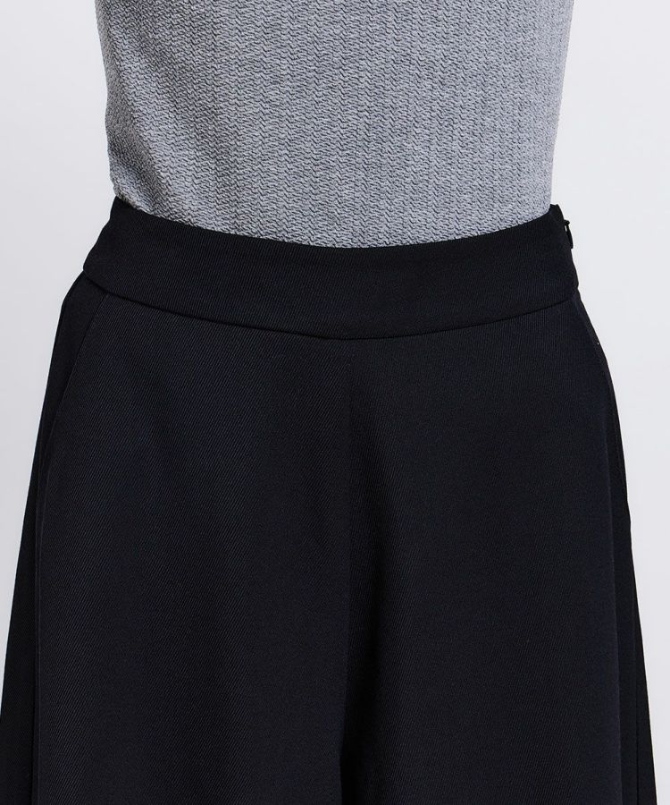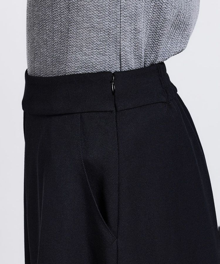 ポリエステルとウールの混紡糸を使用したカルゼ組織のキュロットパンツ。サイロ糸を組み合わせることで柔らかさを表現しました。また、膨らみ感とたっぷりのボリュームも特長で、スカート風に楽しめるのが魅力的。素材の上品さが際立つアイテムで、糸にスケールオフ加工を施しているため、毛羽立ちが少ないのもうれしいポイントです。