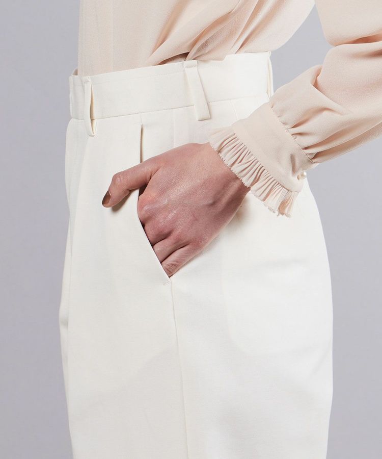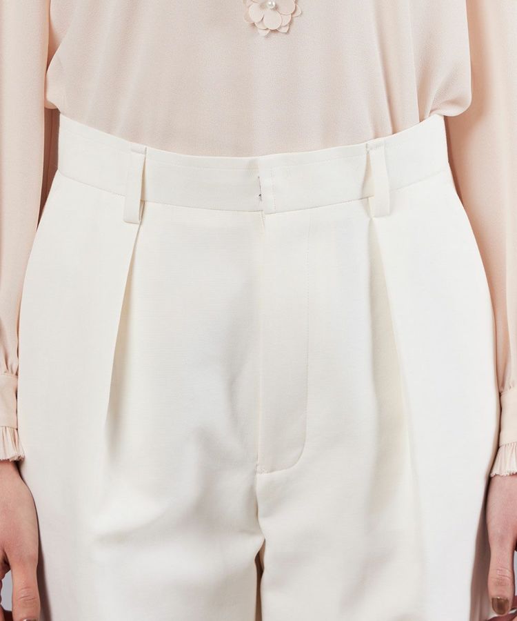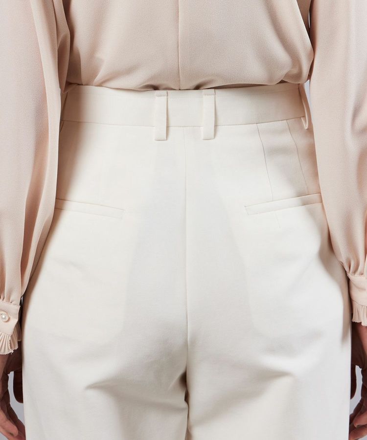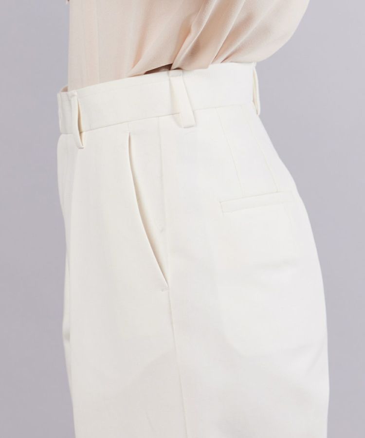 シンプルなストレートシルエットで、着回し力に優れたホワイトパンツ。高密度でコンパクトに織り上げたコットン素材を使用し、柔らかな肌ざわりと快適な履き心地を実現しました。タック入りのデザインが腰まわりをすっきりと見せ、スタイルアップを実現。クリーンな印象のホワイトパンツは、コーディネートに爽やかなエッセンスをプラスしてくれます。