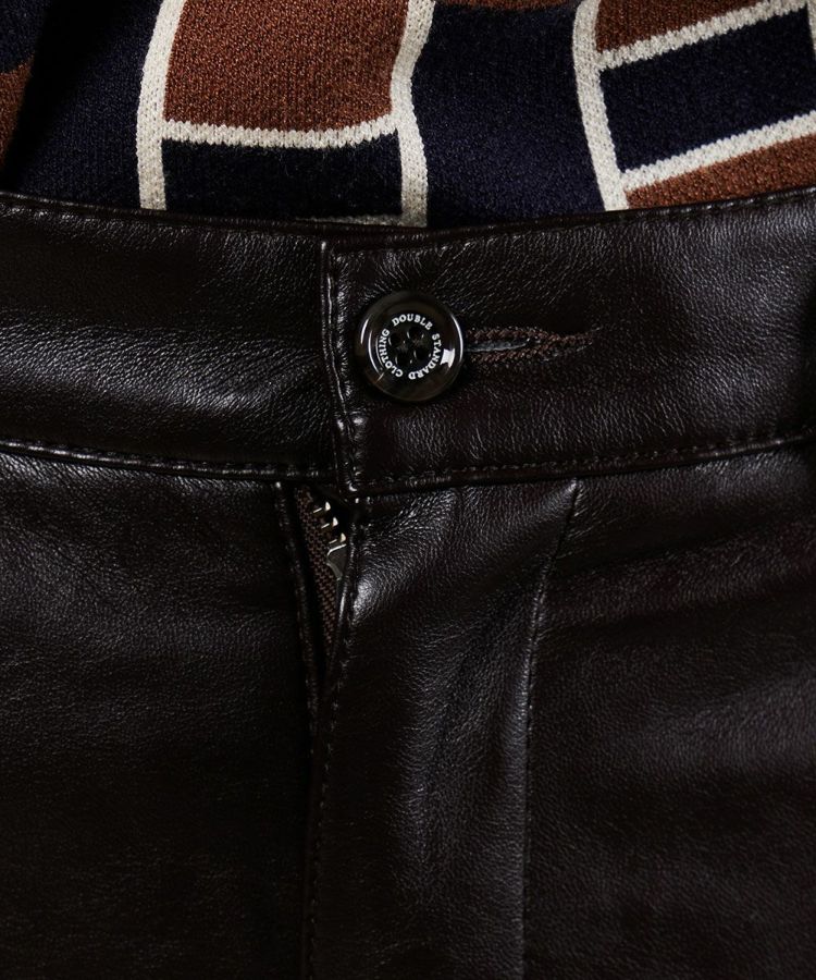 レザーライクな質感がクールな印象を与えるスキニーパンツ。柔らかく肌なじみの良い合成皮革にエンボス加工を施し、ヴィンテージ感のある表情豊かな風合いに仕上げました。脚のラインを美しく見せるスリムなシルエットと、上品な光沢感がスタイリングをワンランクアップ。ハンサムライクな着こなしから、女性らしいスタイルまで幅広い表情が楽しめる万能なアイテムです。