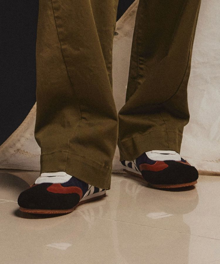 ヌバック、スエード、スムース、ポリ生地といった異素材を組み合わせた、上品なスニーカー。モノトーンカラーに仕上げ、しっとりと落ち着いたデザインに仕上げました。柔らかく作ったヒールカウンターもポイントで、履き口にもシャーリングをプラス。大人カジュアルなコーディネートに馴染む一足です。