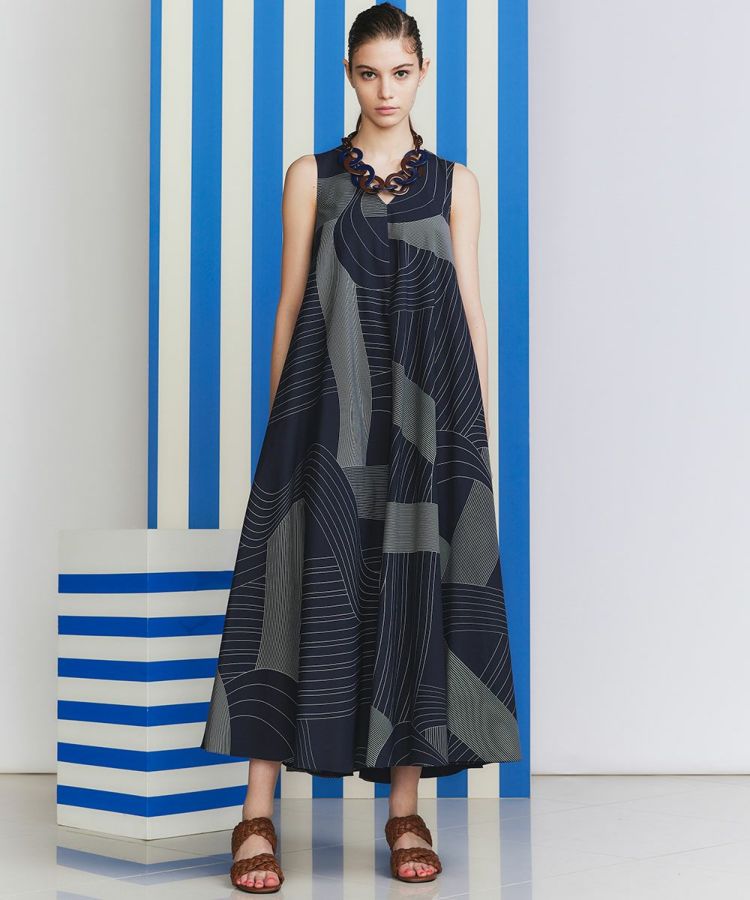 足元にリゾート感をプラスしてくれる編み込みデザインのサンダル。特殊なレザーを使用しています。太めのヒールなので安定感があり、アッパーも甲を包み込むように配慮されているのがポイント。エレガントなルックスでありながら歩きやすいのが魅力です。また、ワンピースからデニムパンツまで、どんなスタイルにも合わせられるのもうれしい。
