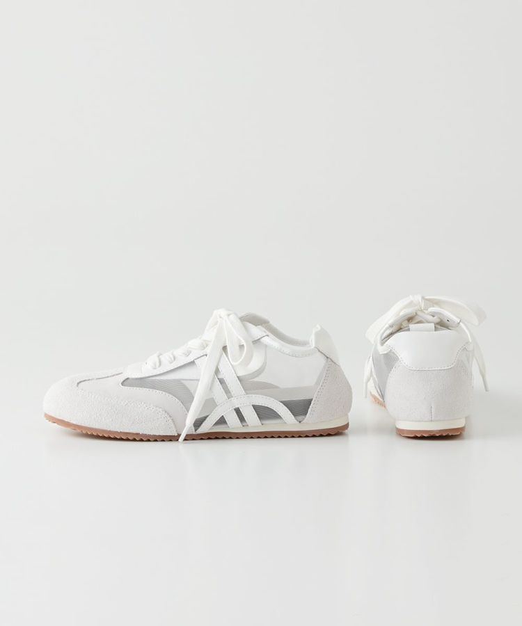 トレンドライクなデザインと、季節感たっぷりなシアーなメッシュ素材を組み合わせたスニーカー。これひとつでコーディネートに抜け感が出る一足です。フラットなソールとベーシックなカラーリングなので、合わせる服を選ばないのもうれしいポイント。カジュアルはもちろん、きれいめコーデとの相性は抜群です。