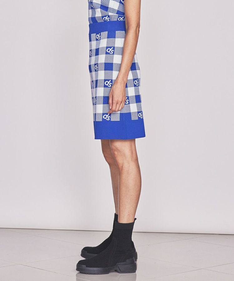 ダブルジャガードで仕上げた、着映え力抜群のスカート。艶感のあるレーヨン×ナイロンの撚糸を使用、撚り回数を増やすことでドライタッチな表面にし、清涼感を出しています。毛玉ができにくいのもポイントで、夏でも自宅でのお手入れが簡単なのもうれしい。すっきりしたフォルムの台形で、ミニ丈でヘルシーに着こなしたり、同素材のキャミソールとセットアップでコーディネートするのもおすすめです。