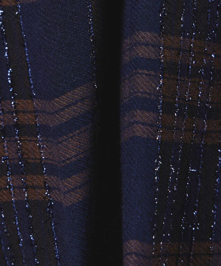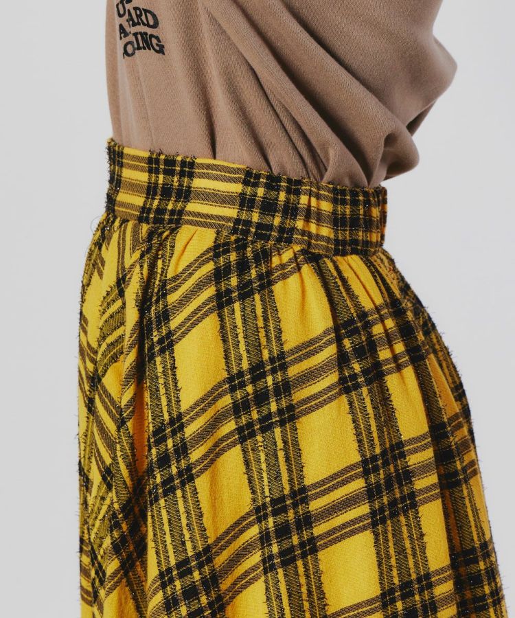 イタリアのLINEAESSE社の先染めチェック生地を使用した、フェミニンで秋冬らしい優雅が漂うフレアスカート。ヴィスコース混によるドレープ性、ウール混による程よい温かみ、モール糸による光沢感を兼ね備えています。軽やかな風合いがフレアシルエットにマッチし、歩くたびに美しさが映えるアイテムです。
