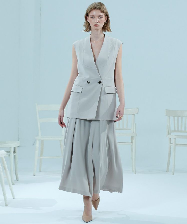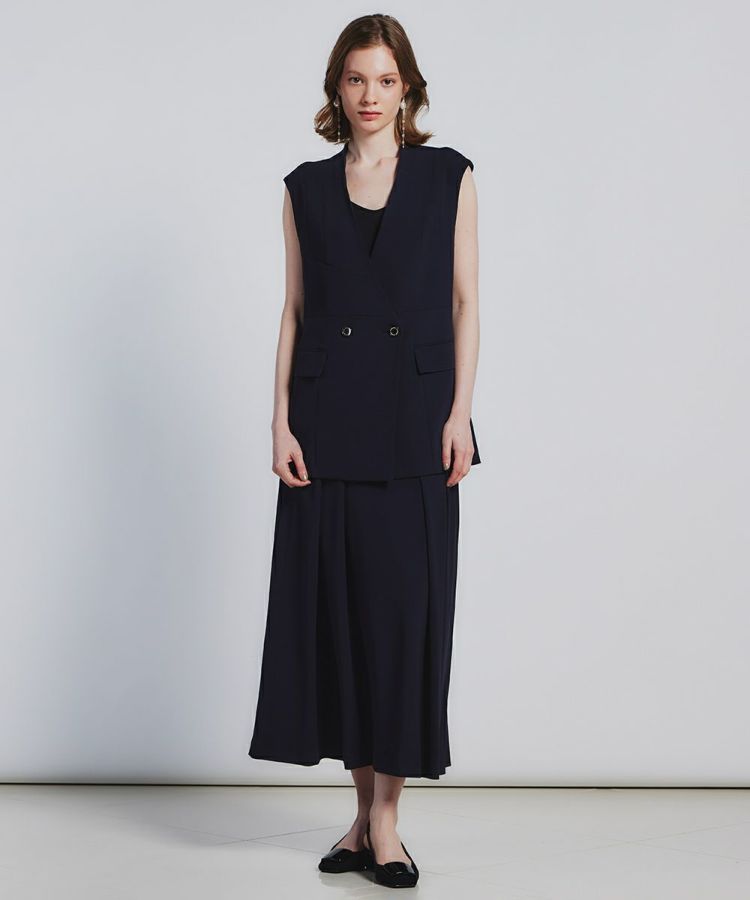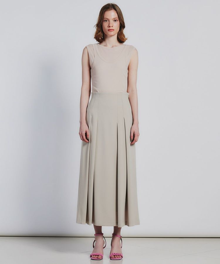 定番生地であるバックサテンジョーゼットを使用したスカート。ストンと落ちるシルエットのペンシルラインながらも、タックを入れることで足さばきを快適にしました。また、縦のラインを強調させることでスタイルアップが叶うのもうれしいポイント。Tシャツからニットまで合わせるアイテムを選ばず、一年中着回せるのも魅力的です。同素材のジャケット(型番:0305150243)とセットアップを楽しむのも◎。