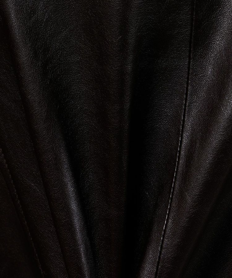 柔らかな質感の合成皮革を使用したフェイクレザースカート。サイドの切り替えラインがボリューム感のあるフレアシルエットを作り出し、女性らしい優雅な印象を演出します。全体に施されたエンボス加工がヴィンテージライクな風合いをプラス。カジュアルからモードまで幅広く楽しめる一着です。