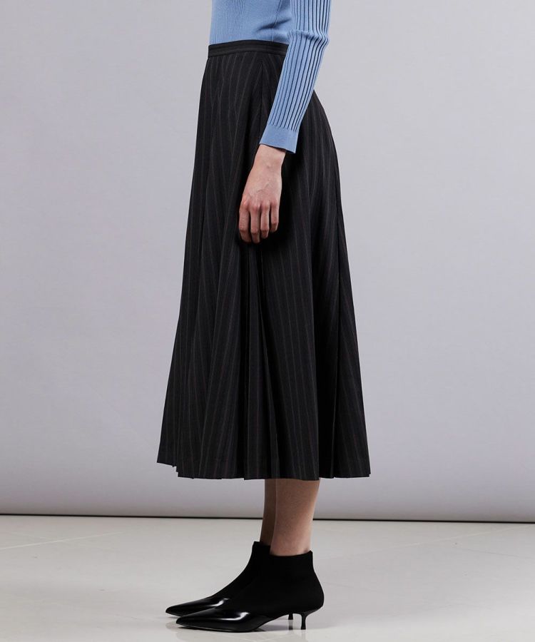 サラッとした肌ざわりと上品な光沢感が特徴の高品質な生地を使用したスカート。ボックスプリーツ仕様にしたことで、クラシカルで洗練された雰囲気を演出しました。レトロな印象のベージュ×ブラックのグレンチェック柄と、シックでモダンなグレー×レッドのストライプ柄の2パターンをご用意。シンプルなシャツと合わせるだけでエレガントな大人のスタイリングが完成します。