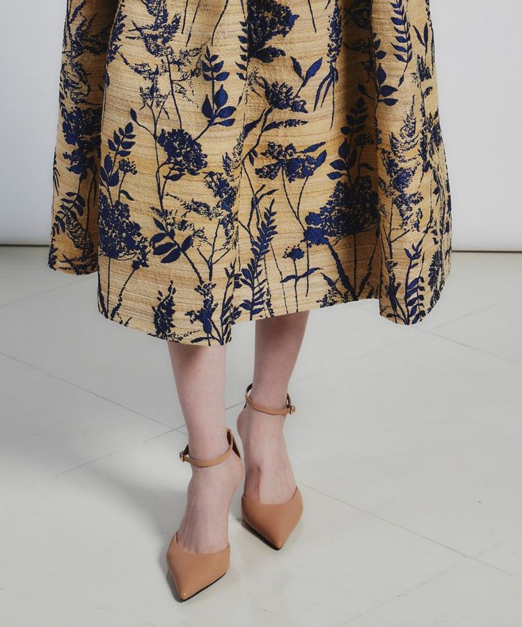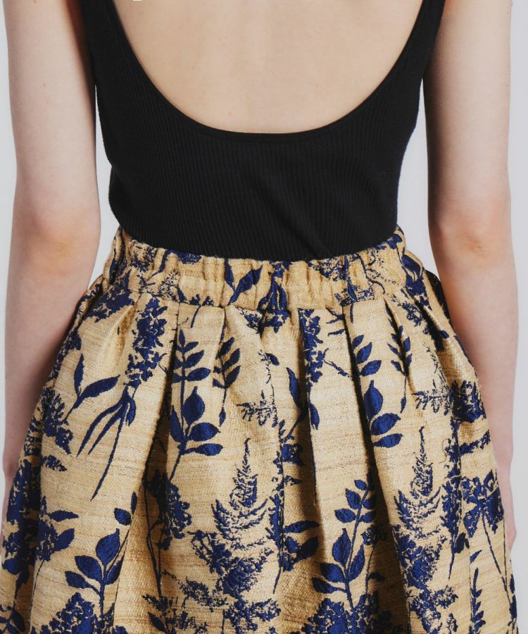 レトロモダンな草花模様のジャガードがラグジュアリーな印象を与えるスカート。立体感とハリ感のあるAラインシルエットがコーディネート映えする一着です。イタリアのコモ地区で1989年に創業した老舗生地メーカーの生地を使用。インパクトがありながらもシックで大人っぽく着られる、絶妙なカラーリングと質感が魅力です。ドレープが効いているため、ウエストやヒップラインがカバーされるのもうれしいポイント。